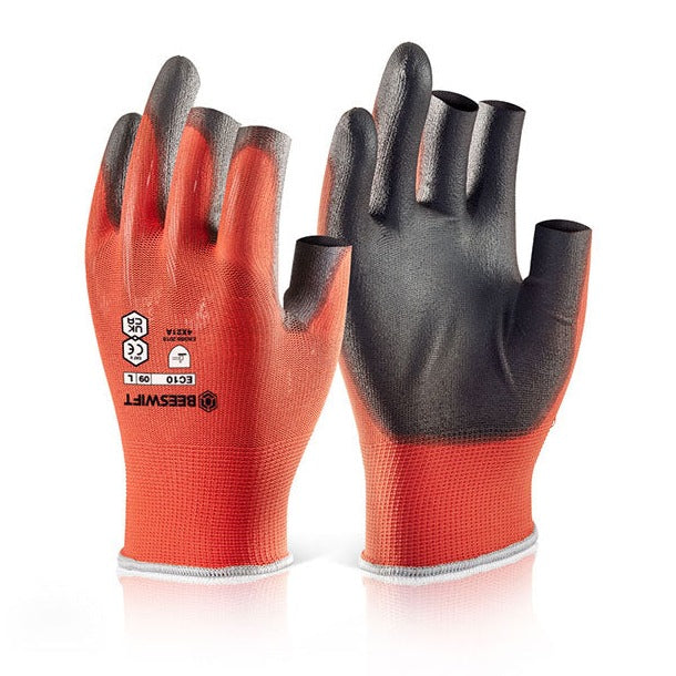 Beeswift Pu Coated 3 Fingerless Glove Red