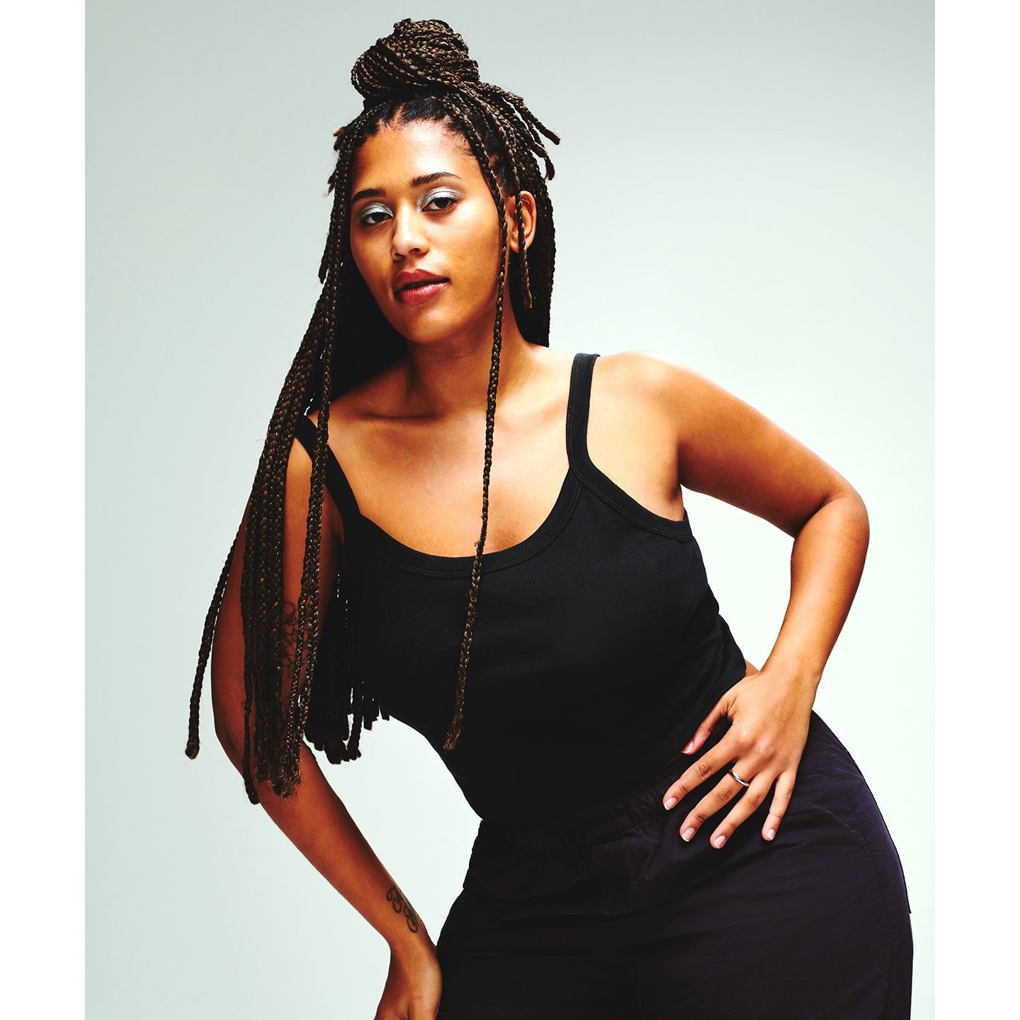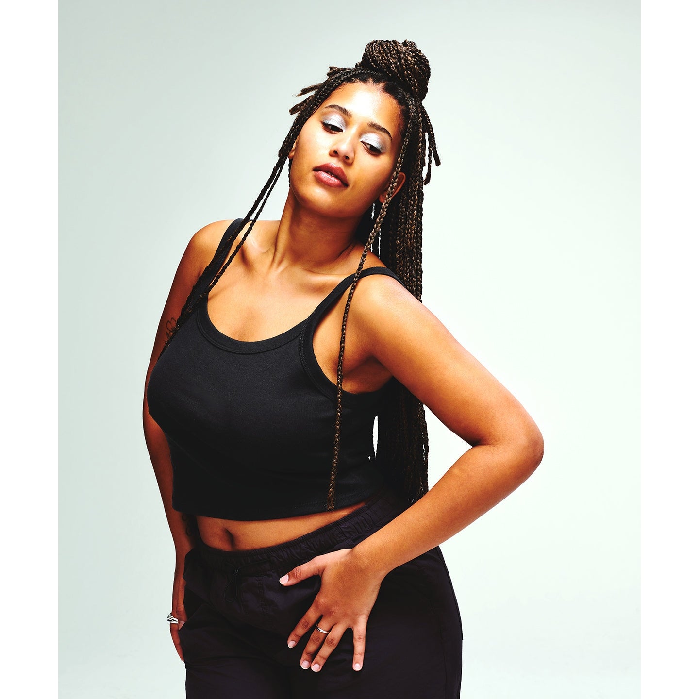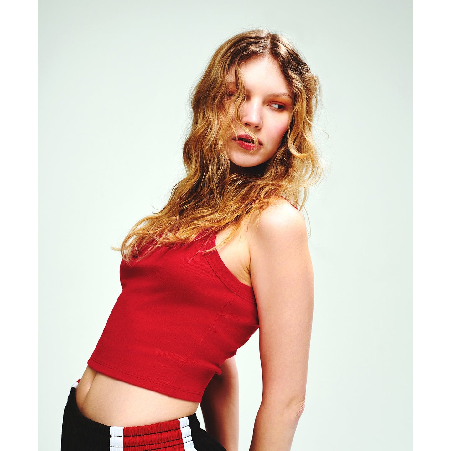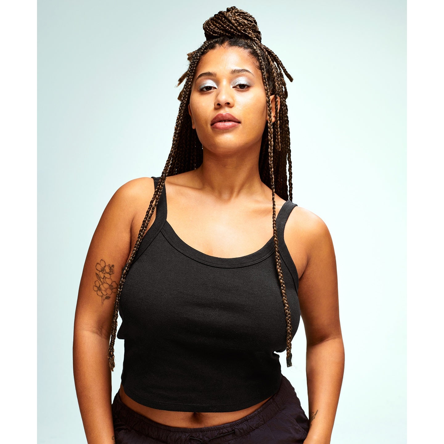 Thick spaghetti straps. Mid-length. 1x1 micro rib. Fitted. Stretch fit. Pre-shrunk. Side-seamed. WRAP certified.