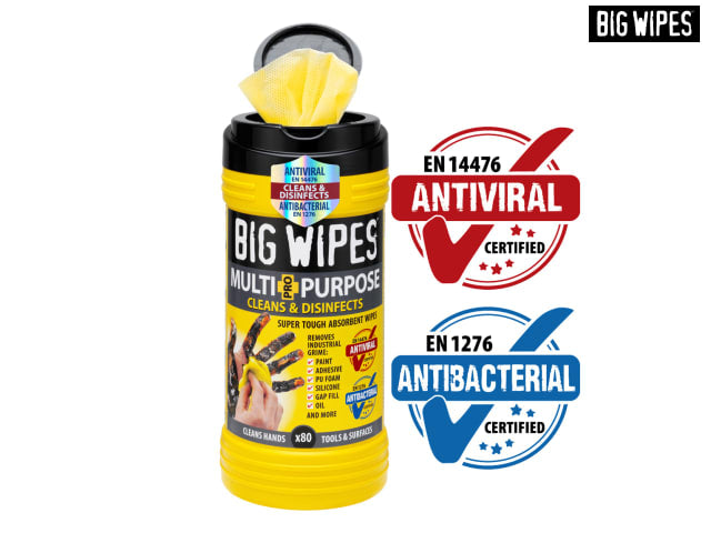 Certified antiviral (EN14476) and antibacterial (EN1276). Big Wipes clean AND disinfect to protect you, your colleagues and your customers and keep your workspace and equipment sanitised.