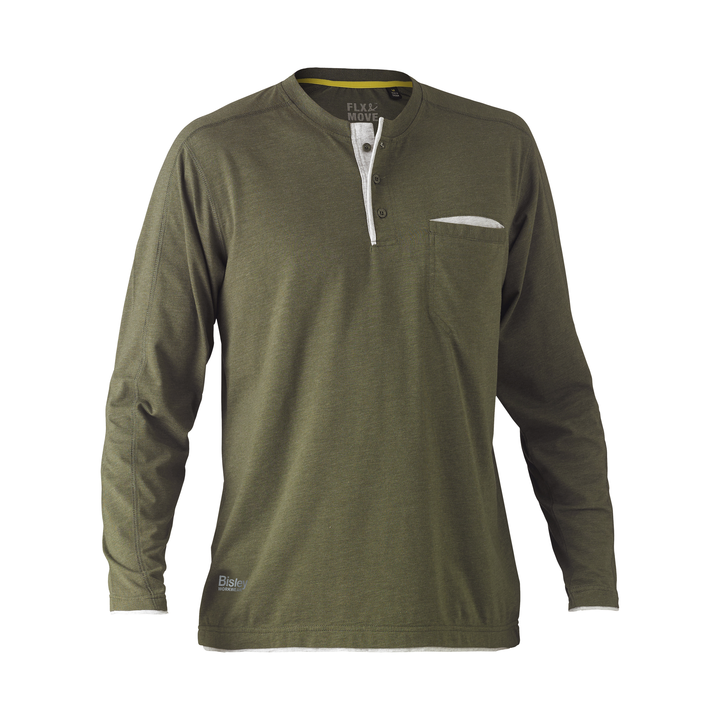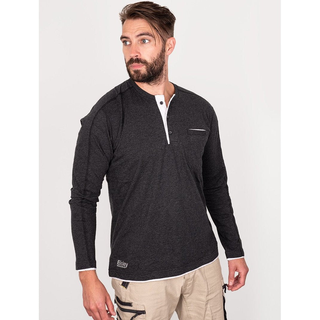 Bisley Flex & Move Long Sleeve Cotton Henley T-Shirt