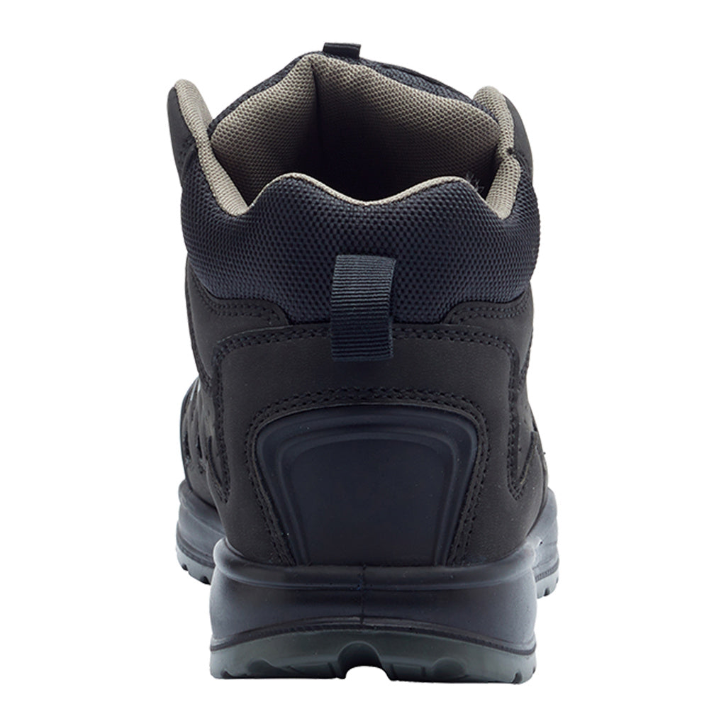 The Clayton Hiker features a water-resistant mesh/TPU upper to keep feet dry, with both steel toe cap and midsole protection for added safety. The hardwearing dual-density PU sole is designed for all-day performance, offering shock absorption while being anti-slip, anti-static, and resistant to fuel oil.
