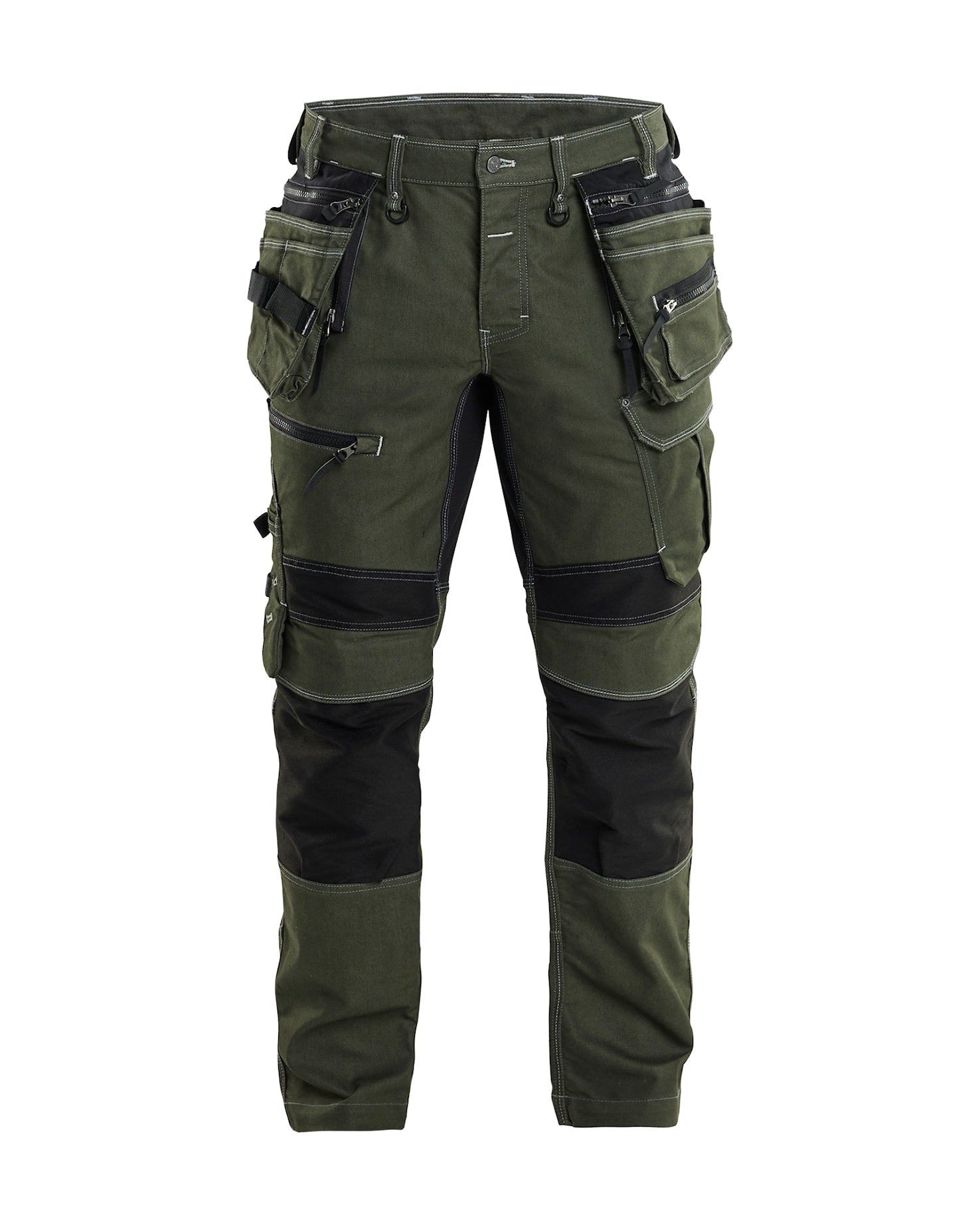 Tool pockets – extra wide, with tool holders and compartments; zipper for fixed or detachable tool pockets.