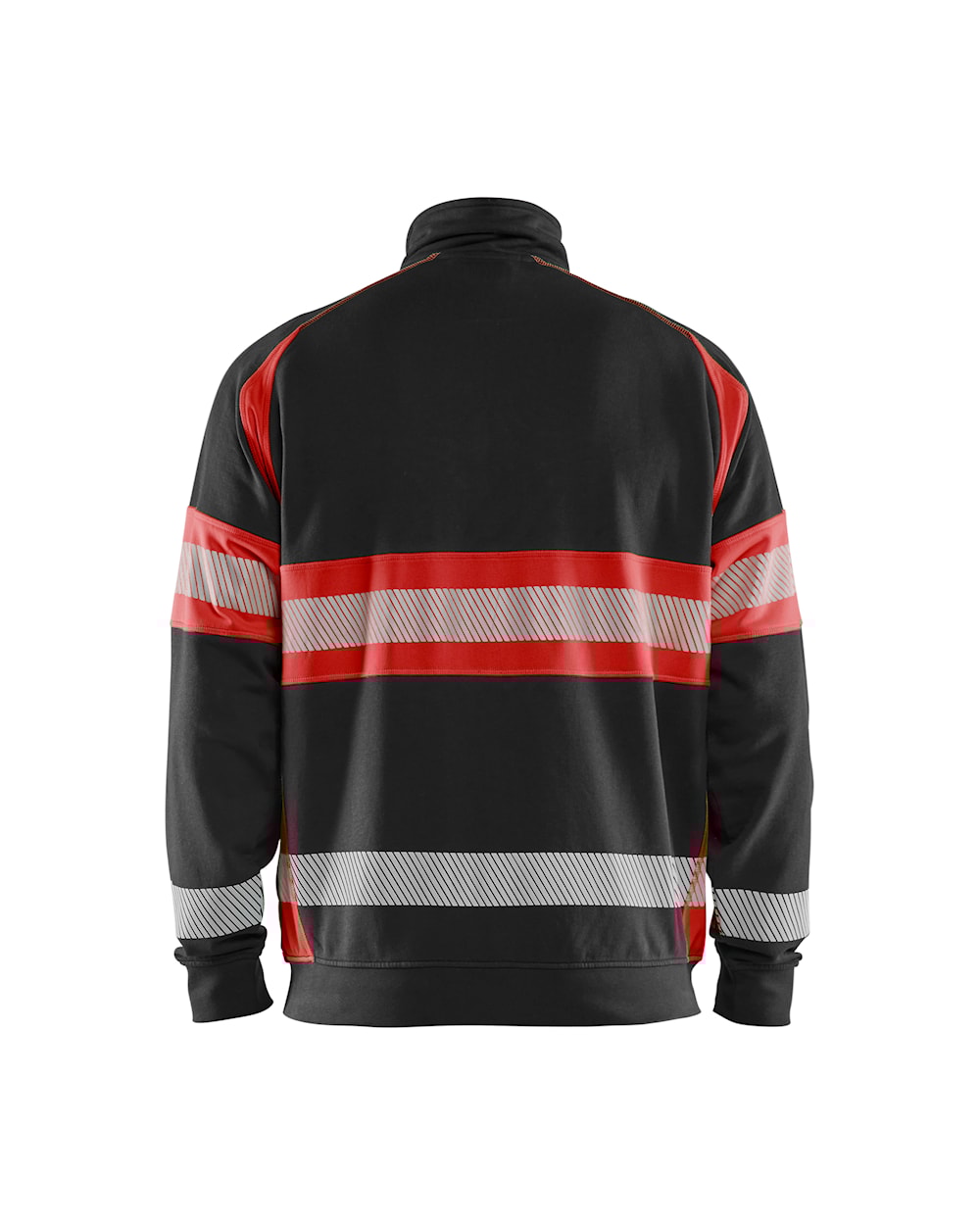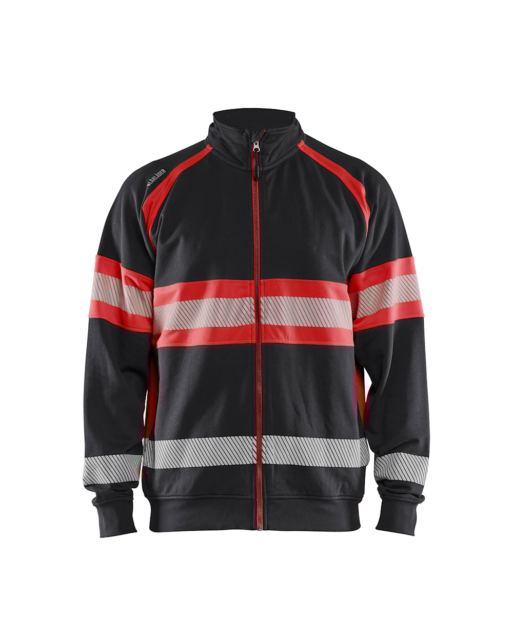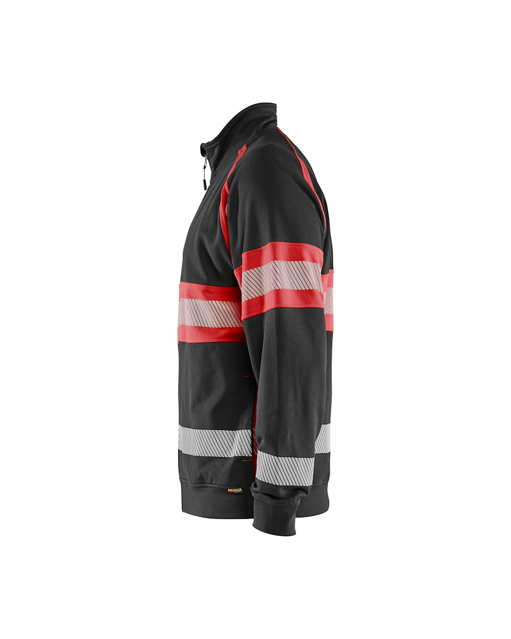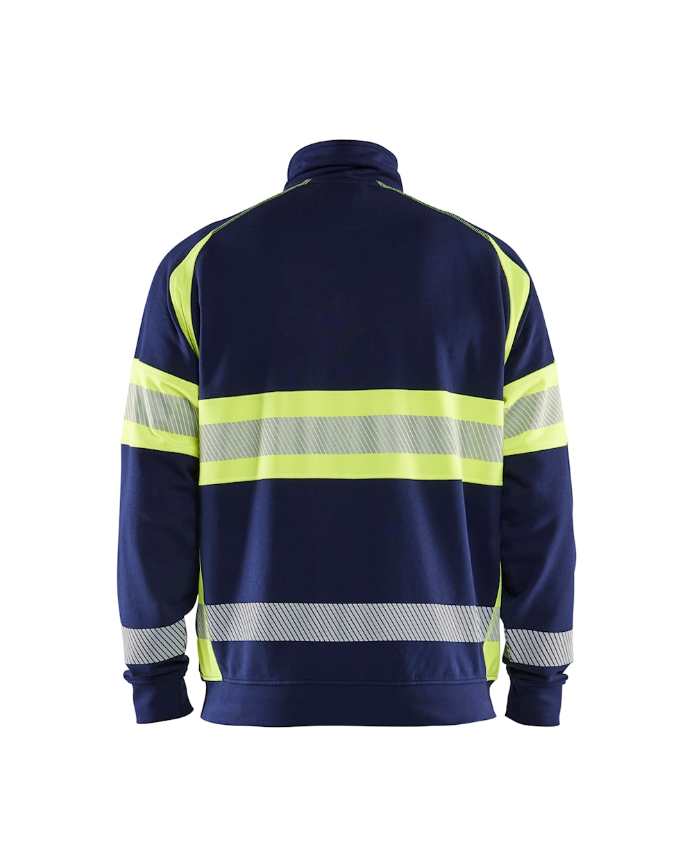 Soft and comfortable Hi-vis sweater in lovely cotton quality with cut reflective tape for extra good stretch abilities and breathability. Has pockets on the sides, high collar, full zip at the front and cuffs at the bottom and sleeve ends for higher comfort. The dark part of the sweater consists of 100 per cent cotton, and the Hi-vis part is made of 100 per cent polyester. Certified according to EN ISO 20471, class 1.