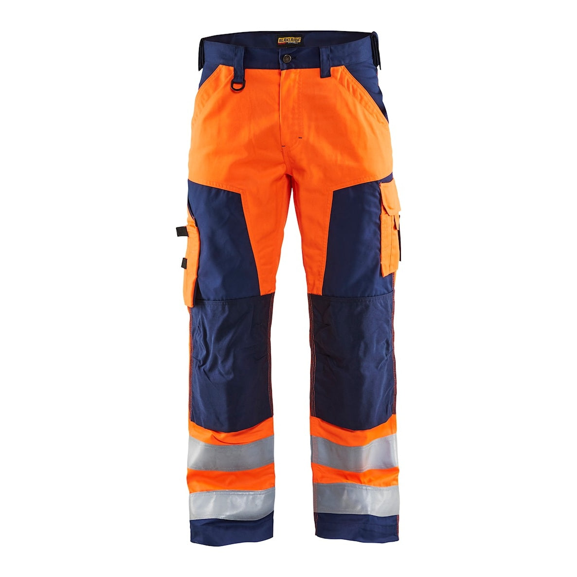 Blaklader Hi-Vis Trousers without Nail Pockets 1566 - Hi-Vis Orange/Navy Blue