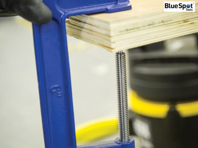 The BlueSpot Fine Thread G-Clamps have a fine thread with reinforced shoulders for strength. They have a malleable cast iron frame, a tommy bar handle and swivel shoe. Ball and socket head for maximum contact on uneven surfaces.