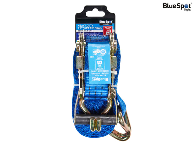 The BlueSpot Tools Heavy-Duty Ratchet Tie Down Straps are designed for quick and easy securing/transporting of loads. Double J hooks provide extra holding power whilst the metal buckle and PES webbing provides a secure hold. Ideal for cars, commercial vehicles, boats, bikes, trailers and more.