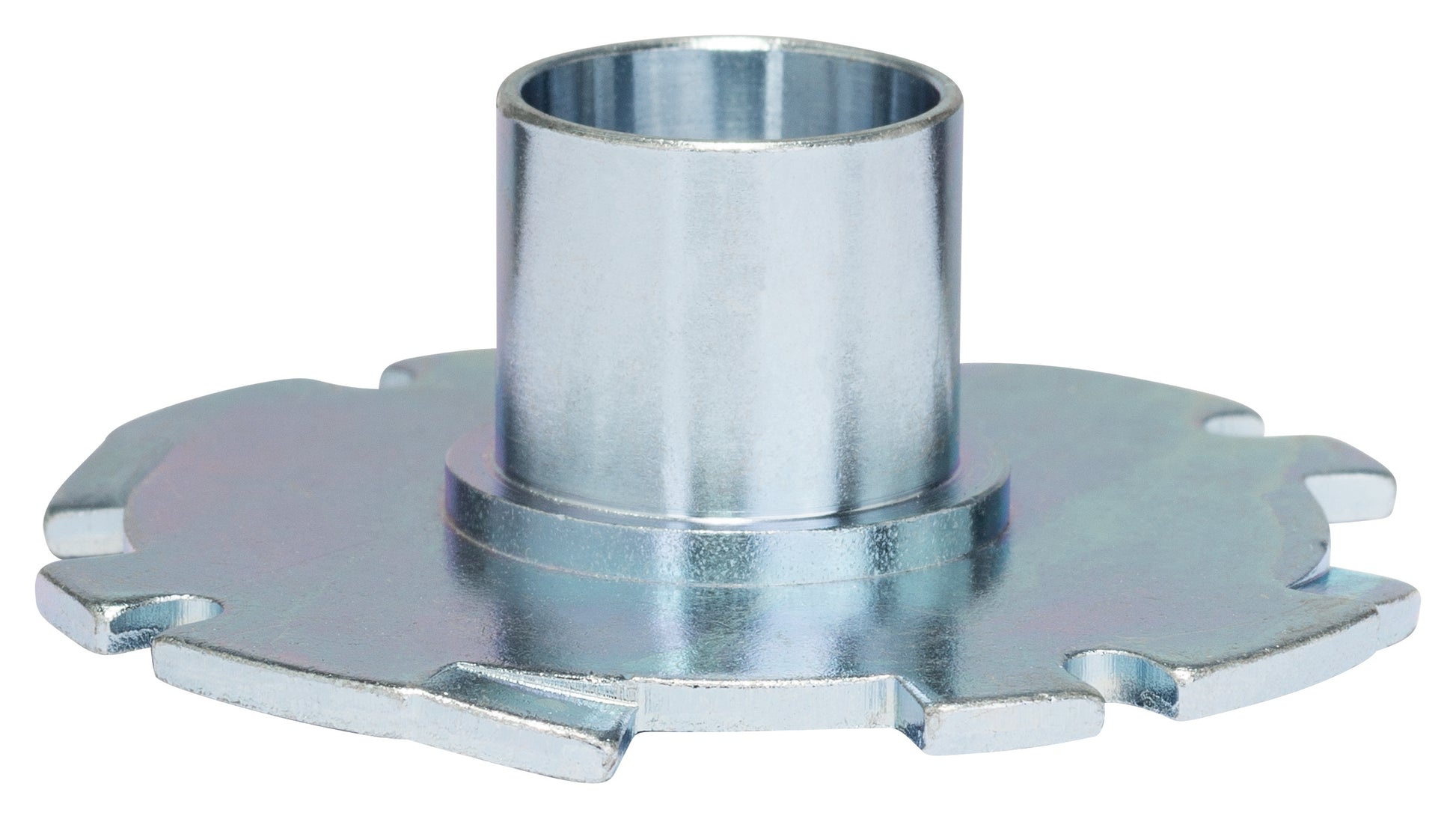 The distance between the guide and the router bit must be taken into consideration when making a template for use with a template guide. This distance is calculated with the following formula: diameter of template guide (K) diameter of router bit (F))/2. The Template Guide for routers runs along templates transferring shapes onto the workpiece. It is indispensable when working with templates and offers a quick-fastening Bayonet lock for rapid tool-free changing.