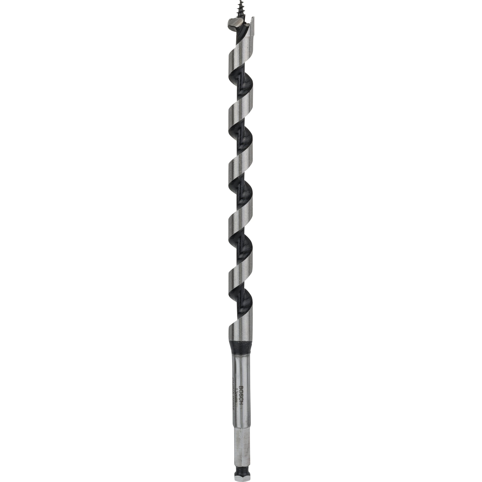 This drill bit has a hexagonal shank system and works with all drill drivers with a 13-mm chuck. The Auger Bit is ideal for fast drilling-accuracy when producing through-holes, pre-drilling for rafter nails and drilling deep dowel holes in wood. The heavy-duty self-feeding tip pulls the bit through completely, which allows for quick and effortless precision-drilling. Straight holes and a high chip removal rate and increased speed are made possible by the bit's optimised low-friction flute geometry with a solid centre. Its optimised scoring spur and precision-ground main cutting edge produce accurate holes. It is ideal for use in the ancillary building trades, for carpenters and roofers, and is suitable for soft and hard wood