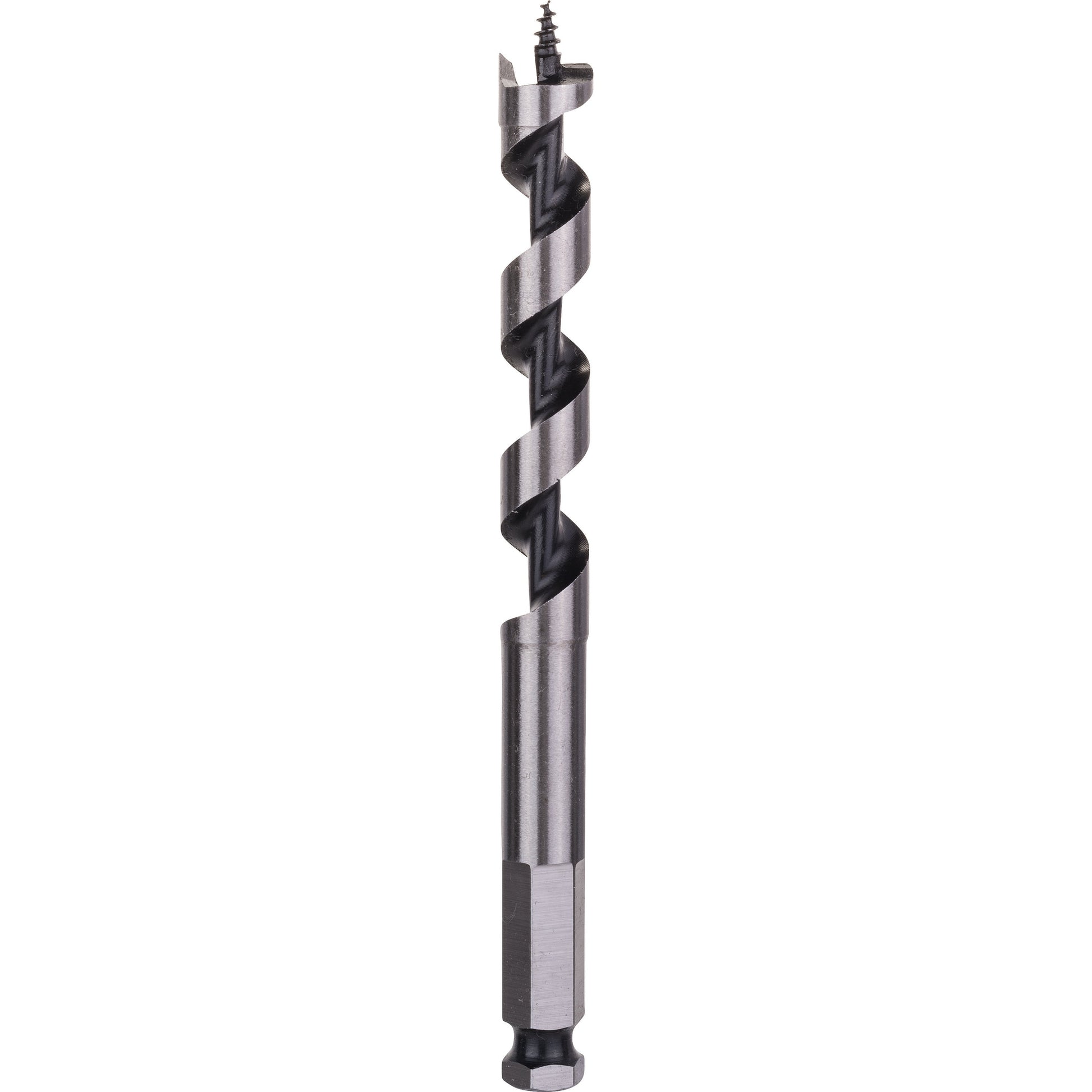 This drill bit has a hexagonal shank system and works with all drill drivers with a 13-mm chuck. The Auger Bit is ideal for fast drilling-accuracy when producing through-holes, pre-drilling for rafter nails and drilling deep dowel holes in wood. The heavy-duty self-feeding tip pulls the bit through completely, which allows for quick and effortless precision-drilling. Straight holes and a high chip removal rate and increased speed are made possible by the bit's optimised low-friction flute geometry with a solid centre. Its optimised scoring spur and precision-ground main cutting edge produce accurate holes. It is ideal for use in the ancillary building trades, for carpenters and roofers, and is suitable for soft and hard wood