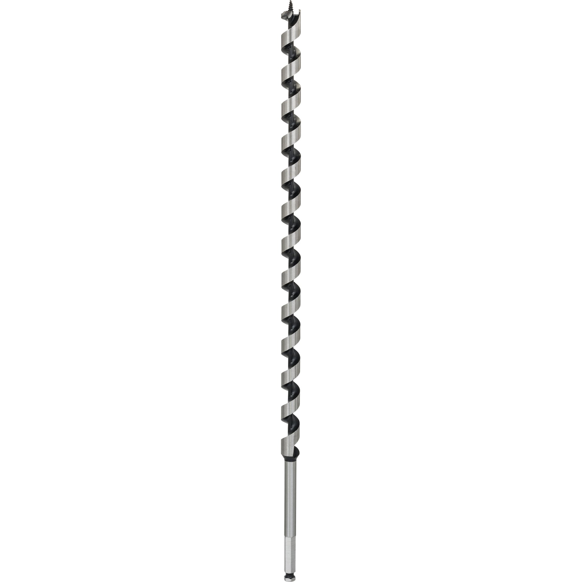 This drill bit has a hexagonal shank system and works with all drill drivers with a 13-mm chuck. The Auger Bit is ideal for fast drilling-accuracy when producing through-holes, pre-drilling for rafter nails and drilling deep dowel holes in wood. The heavy-duty self-feeding tip pulls the bit through completely, which allows for quick and effortless precision-drilling. Straight holes and a high chip removal rate and increased speed are made possible by the bit's optimised low-friction flute geometry with a solid centre. Its optimised scoring spur and precision-ground main cutting edge produce accurate holes. It is ideal for use in the ancillary building trades, for carpenters and roofers, and is suitable for soft and hard wood