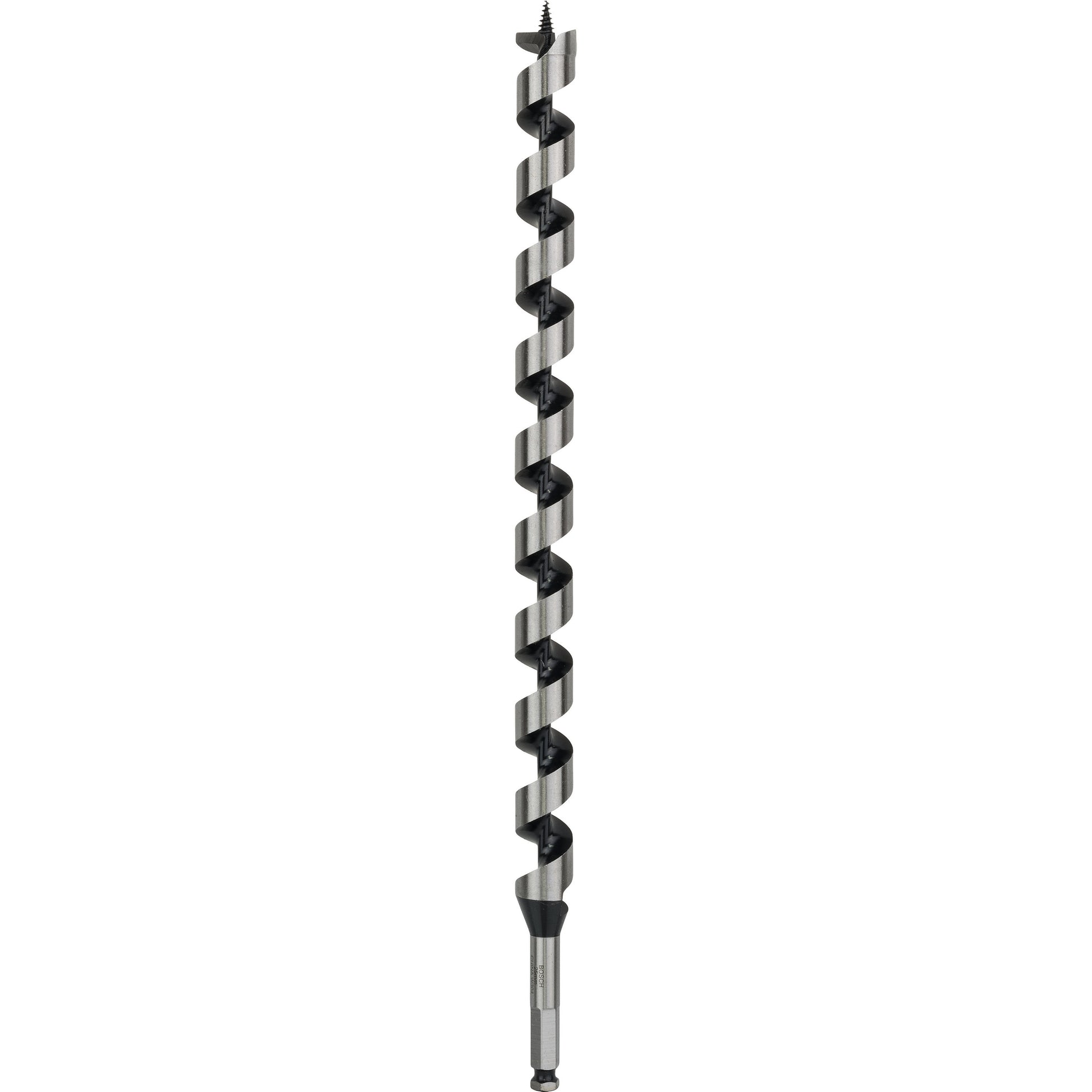 This drill bit has a hexagonal shank system and works with all drill drivers with a 13-mm chuck. The Auger Bit is ideal for fast drilling-accuracy when producing through-holes, pre-drilling for rafter nails and drilling deep dowel holes in wood. The heavy-duty self-feeding tip pulls the bit through completely, which allows for quick and effortless precision-drilling. Straight holes and a high chip removal rate and increased speed are made possible by the bit's optimised low-friction flute geometry with a solid centre. Its optimised scoring spur and precision-ground main cutting edge produce accurate holes. It is ideal for use in the ancillary building trades, for carpenters and roofers, and is suitable for soft and hard wood