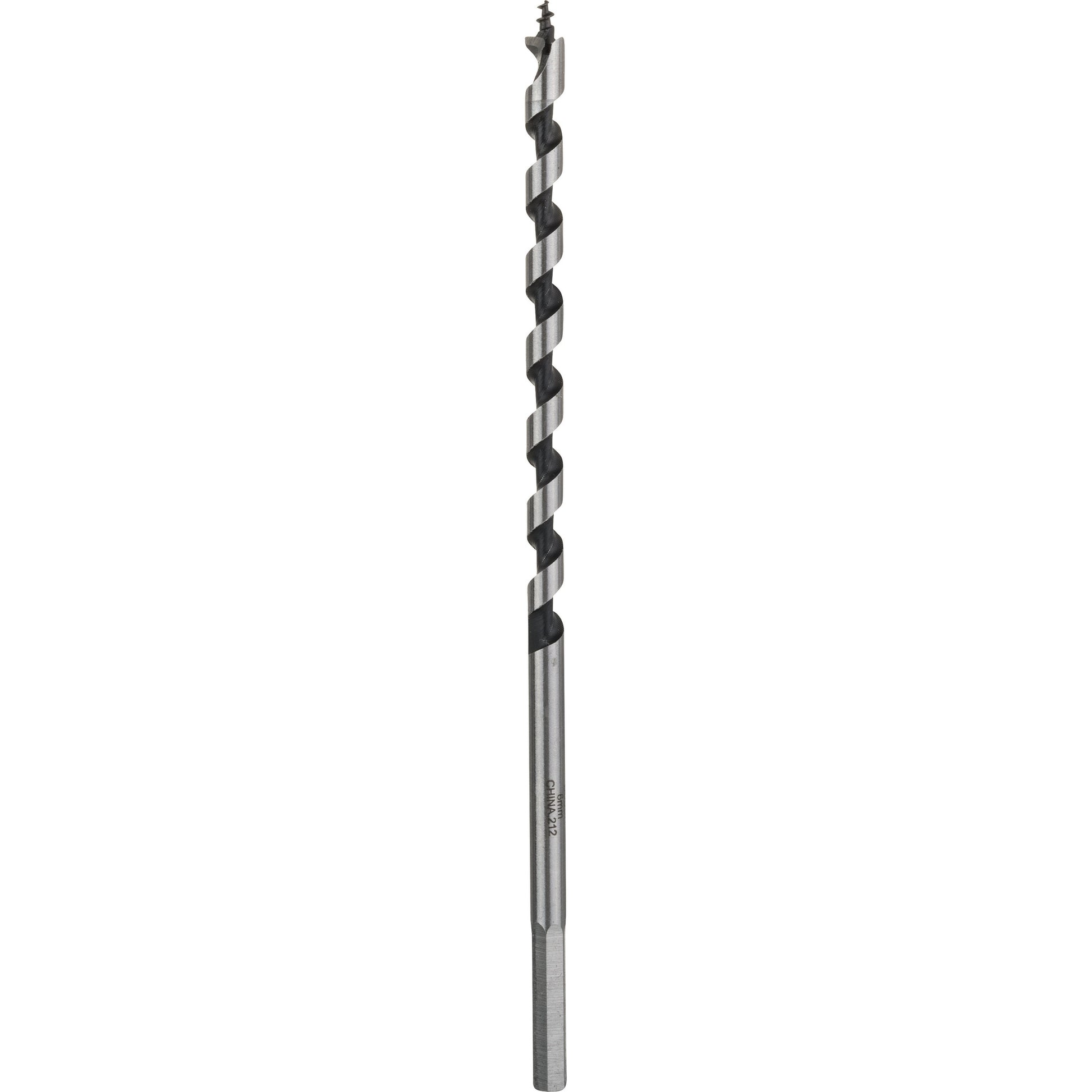 This drill bit has a hexagonal shank system and works with all drill drivers with a 13-mm chuck. The Auger Bit is ideal for fast drilling-accuracy when producing through-holes, pre-drilling for rafter nails and drilling deep dowel holes in wood. The heavy-duty self-feeding tip pulls the bit through completely, which allows for quick and effortless precision-drilling. Straight holes and a high chip removal rate and increased speed are made possible by the bit's optimised low-friction flute geometry with a solid centre. Its optimised scoring spur and precision-ground main cutting edge produce accurate holes. It is ideal for use in the ancillary building trades, for carpenters and roofers, and is suitable for soft and hard wood