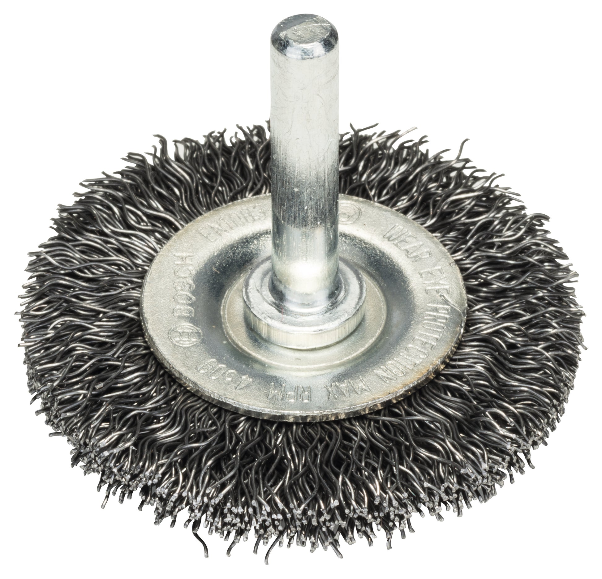 The Wire Wheel provides a good fine surface finish. Fitted with crimped wire for light- to medium-duty cleaning applications on small surfaces, it is ideal for removing annealing colour on welded seams. The wire wheel is suitable for cleaning work at high circumferential speeds on smaller steel surfaces, edges or in grooves. Moreover, it is suitable for removing rust, roughing, mat sanding and paint stripping. Brush wires are available in different thicknesses for variable levels of abrasive needs. Thicker wires are more aggressive, producing a coarser yet faster surface finish, while thinner wires deliver finer, smoother surface results. It is intended for use with drills with 6-mm shank.