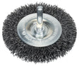 The Wire Wheel provides a good fine surface finish. Fitted with crimped wire, it is ideal for light-to-medium duty cleaning applications on small surfaces. The Wire Wheel is intended for removing annealing colour on welded seams and is suitable for cleaning work on smaller stainless steel, aluminium or non-ferrous metal surfaces, on edges and in grooves. It is also suitable for removing rust, roughing, mat sanding, texturing and paint stripping. Brush wires are available in different thicknesses for variable levels of abrasive needs. Thicker wires are more aggressive, producing a coarser yet faster surface finish, while thinner wires deliver finer, smoother surface results. It is intended for use with drills with 6-mm shank.