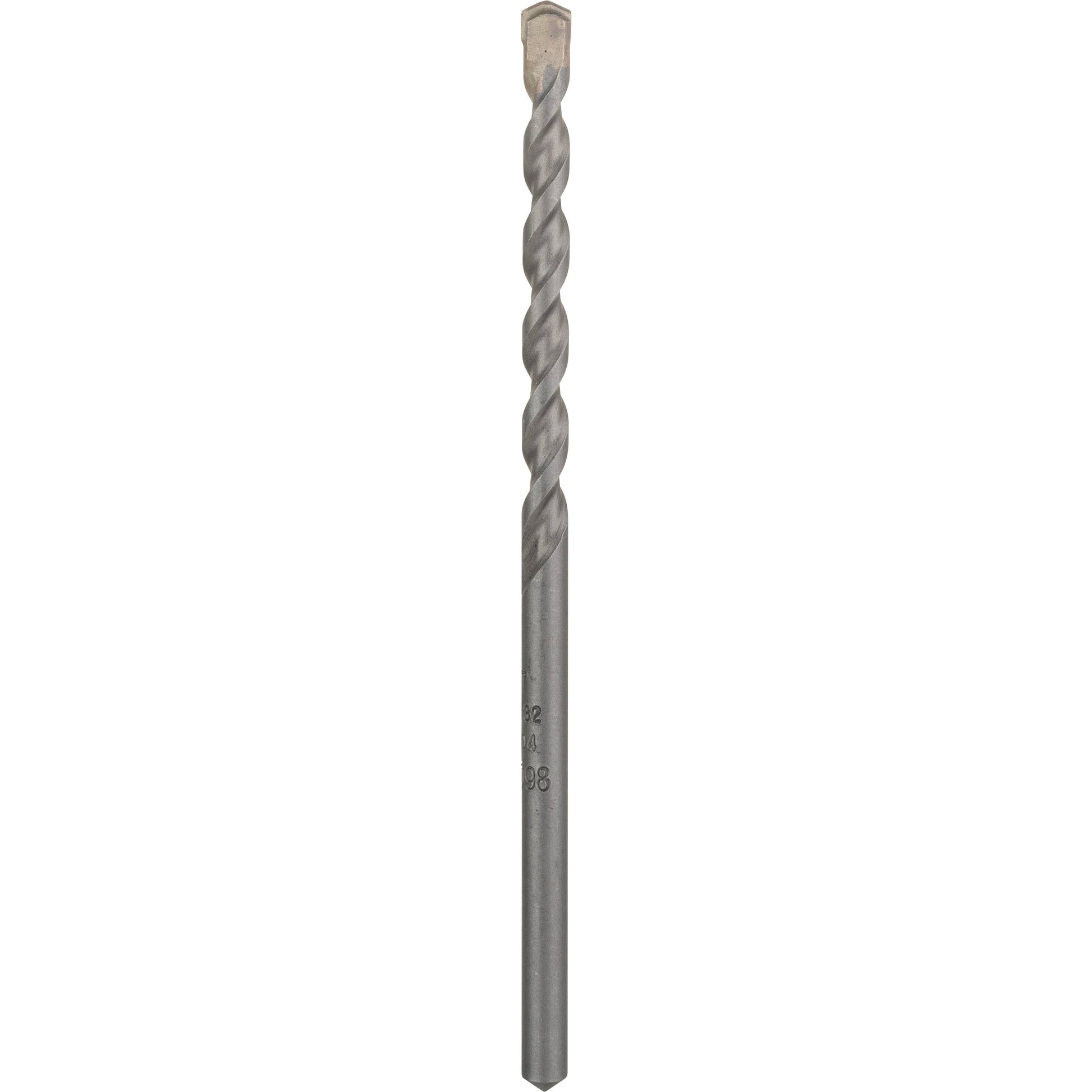 The CYL-3 Drill Bit provides lasting performance when drilling concrete. Its stamina is a result of a highly durable carbide blend specially developed and manufactured by Bosch. The blend is adapted to meet the demands of repeated use and offers high wear resistance when working with concrete. Moreover, the effective 2-flute U-shape design of the bit provides good dust removal, reducing friction, heat development and wear, resulting in an extended lifetime. The bit delivers lasting performance when drilling holes for fixings in abrasive materials such as concrete and natural stone. As proof of quality, the drill bit bears the test mark of the PGM Masonry Drill Bit Association Board, guaranteeing compliance with tight tolerances, exact drilling and the firm hold of fixings. It is compatible with cylindrical shank systems for all corded or cordless impact drills.