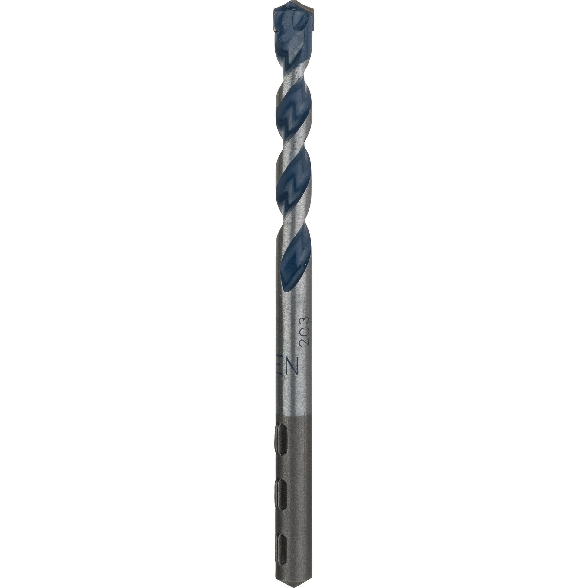 The CYL-5 Drill Bit guarantees extra-long durability when drilling concrete and stone. The combination of a carbide blend developed in-house by Bosch and diamond-ground cutting edges makes the bit extremely wear-resistant. Friction on the flute from drilled material is notably reduced thanks to a 2-flute vario design with a short, variable incline providing good dust removal and wear reduction. The Bosch Power Grip Shank System enables 100% power transfer from machine to drill bit. This allows a direct use of power for drilling with no power loss and thus less wear. For use when drilling holes for fixings in concrete, natural and artificial stone. As proof of quality, the drill bit bears the quality test mark of the PGM Masonry Drill Bit Association Board guaranteeing compliance with tight tolerances, exactly drilled holes and a firm hold on fixings. It is compatible with cylindrical shank systems for all corded or cordless impact drills.