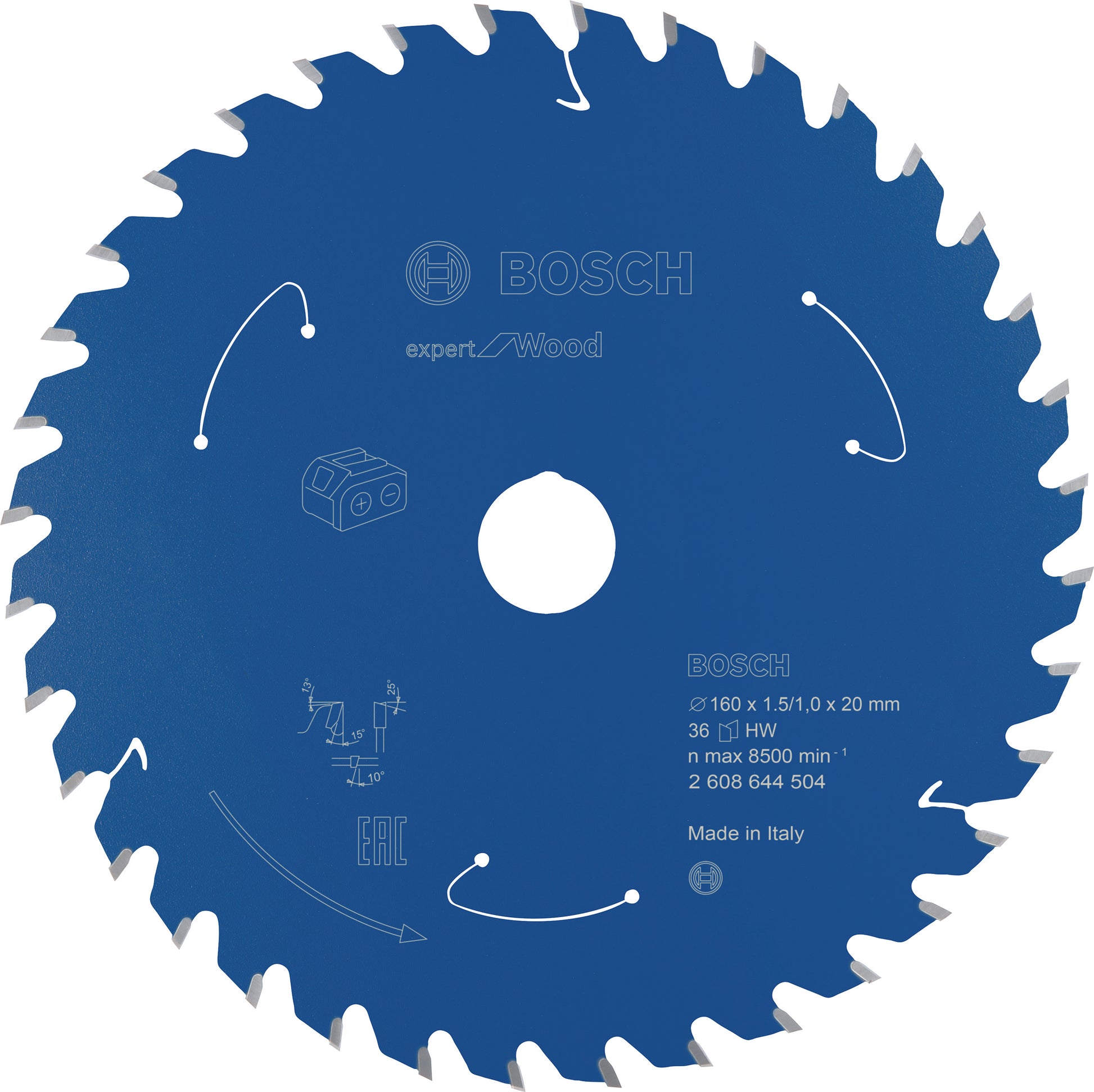 Bosch Professional Expert Circular Saw Blade for Cordless Saws - Wood, 160x1.5/1x20 T36