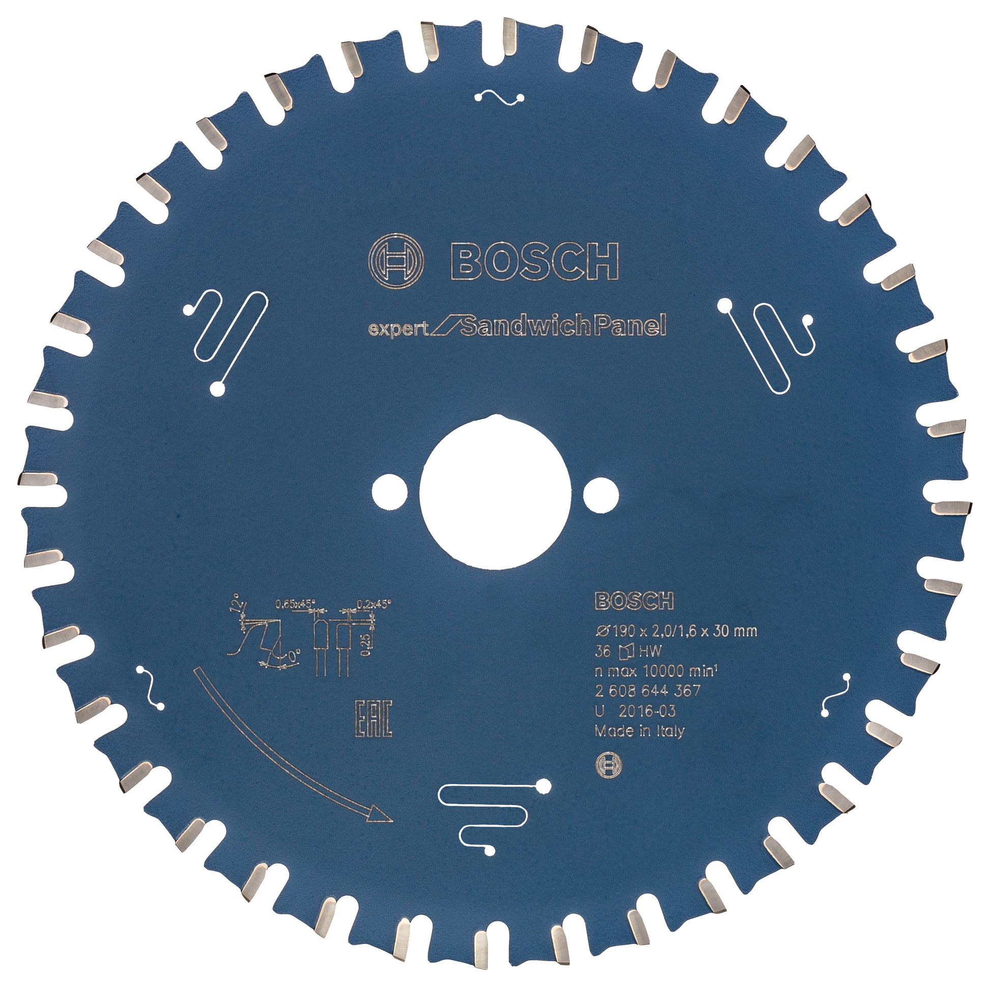 Bosch Professional Expert Circular Saw Blade for Hand Held Saws - Sandwich Panel, 190x30x2x36T