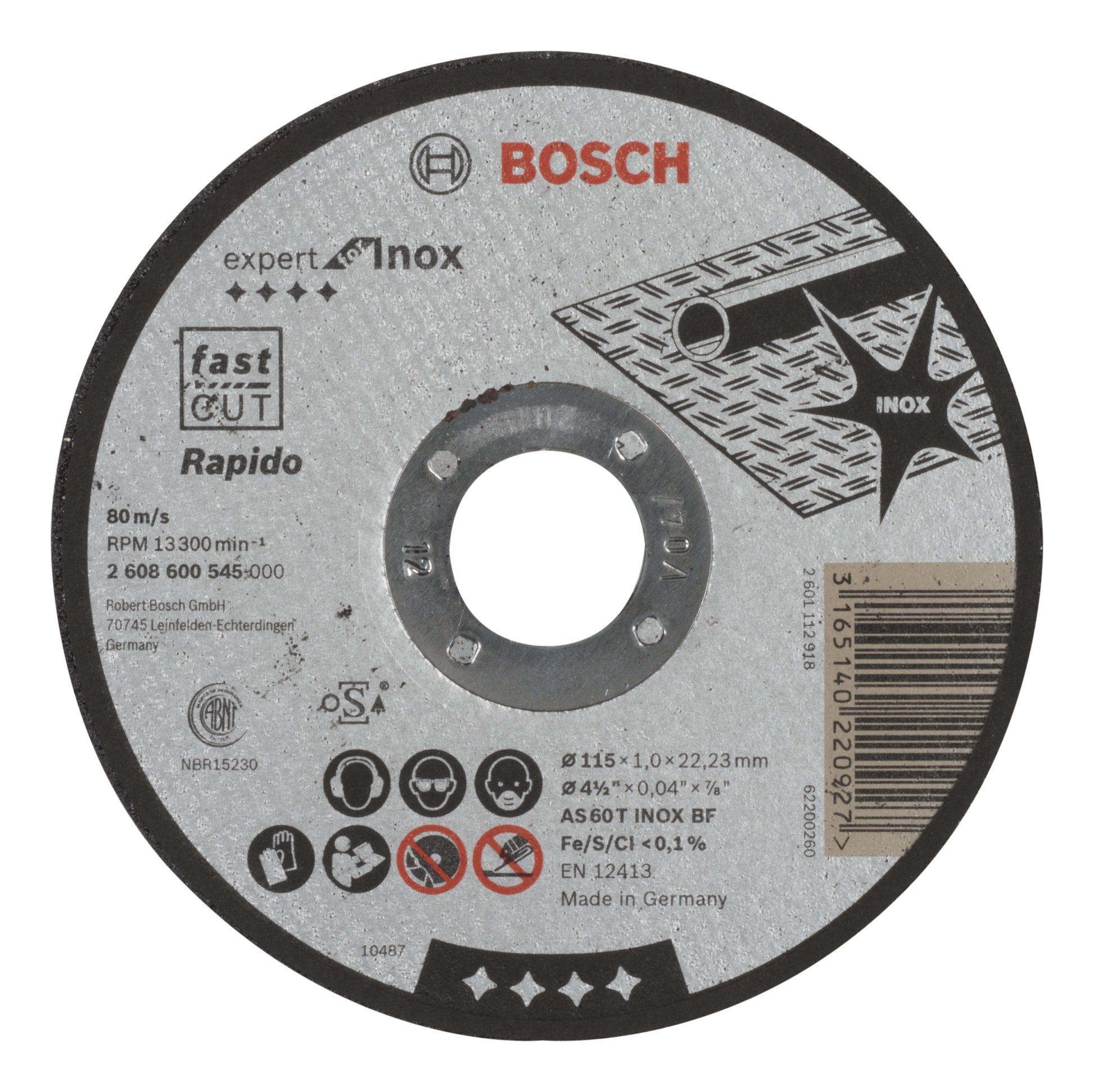 Bosch Professional Expert for Inox - Rapido Straight Cutting Disc AS 60 T INOX BF, 115mm x 1.0mm