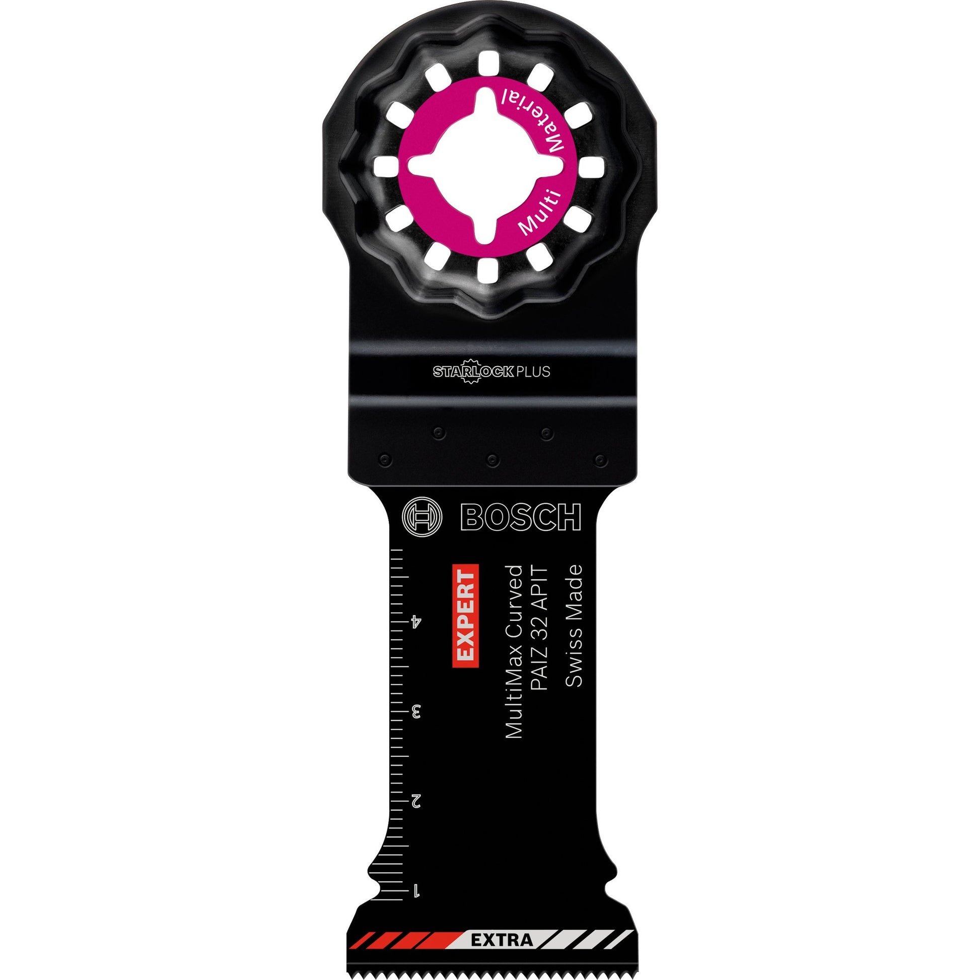 The Starlock PAIZ 32 APT MultiMax Precision Blade delivers wide cuts with longer lifetime when cutting hardened metal. It has high-quality carbide teeth that cut through abrasive and hard materials with maximum wear resistance. The blade´s rounded cutting edge (Curved-Tec) increases durability by preventing tooth breakage while ensuring extra-wide precision plunge cuts in metal/abrasive materials without chatter marks or delamination. The blade saws through metal sheets, abrasive materials such as epoxy, GFK, CFK, plasterboard, cement-bonded fibreboards and fibre-reinforced plastic. The Starlock Plus system offers very fast, deep and versatile plunge cuts. Additionally, the Starlock Snap-In feature allows fast blade removal and exchange within 3 seconds without having to touch the blade. The special mounting system produces the highest power transfer thanks to a 3?dimensional tight-fitting connection between machine and accessory. It is suitable for use with all Starlock Plus or Starlock Max multi?tools.
