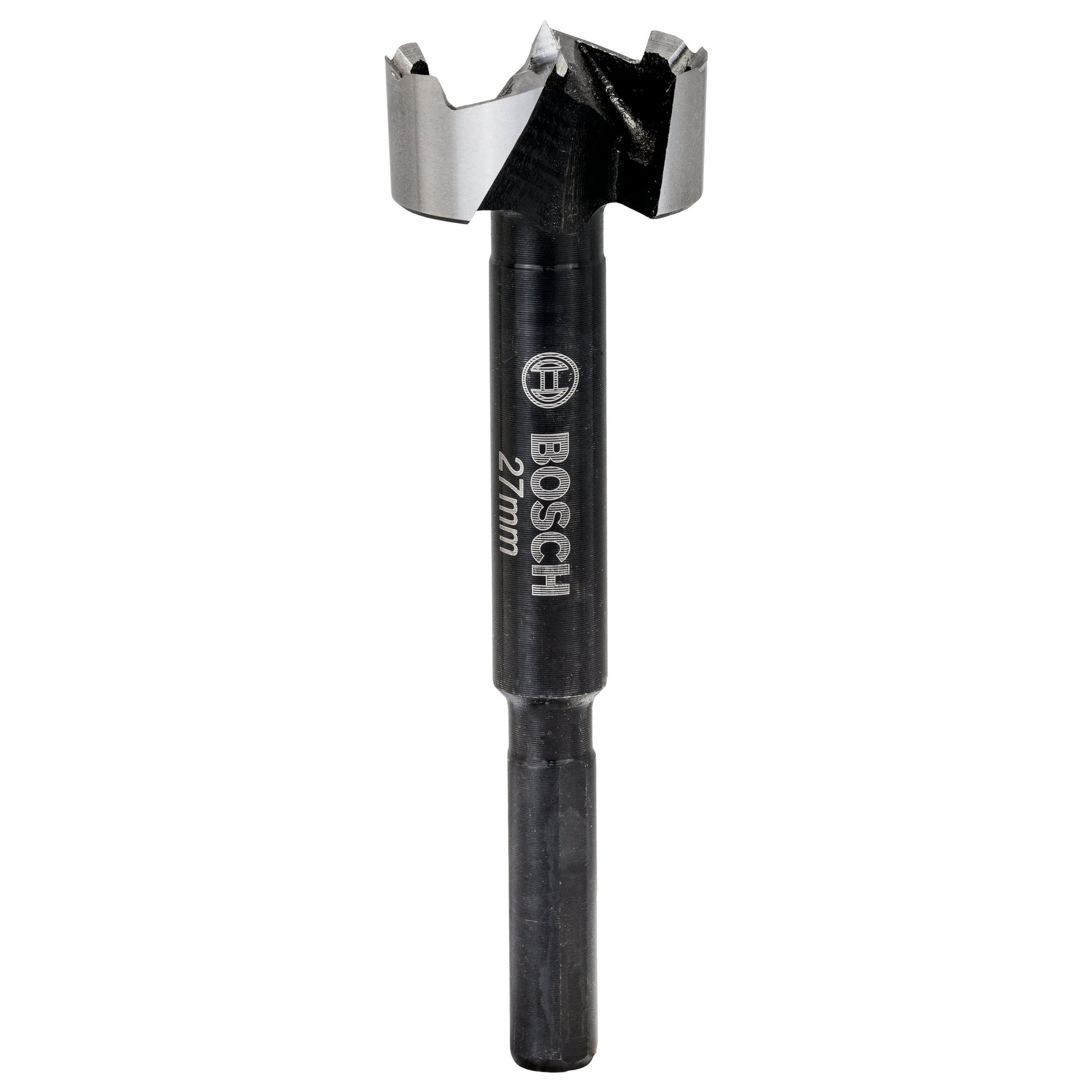 The Forstner Bit delivers excellent lifetime for drilling accurate-fit holes. Its toothed-edge design creates less friction and heat for increased durability. The precision drill bit's short centring tip has two main and one periphery (toothed-edge) cutting edges for spot-on results. Equipped with large chip-free zones, which allow for optimised chip removal, the bit's fast drilling accuracy is further supported. It enables the smooth splinter-free drilling of blind holes as well as edge and slant drilling, e.g. fixing hinges, dowelling and the removal of knotholes. Use when drilling in soft and hard wood, veneered wood and non-laminated chipboard. The Forstner Bit's 3-sided shank prevents spinning in the chuck. It is manufactured to DIN 7483G, cutter hardness is 50 HRC minimum. It is intended for use with all drills (drill drivers, drill stands) with a 10-mm chuck.