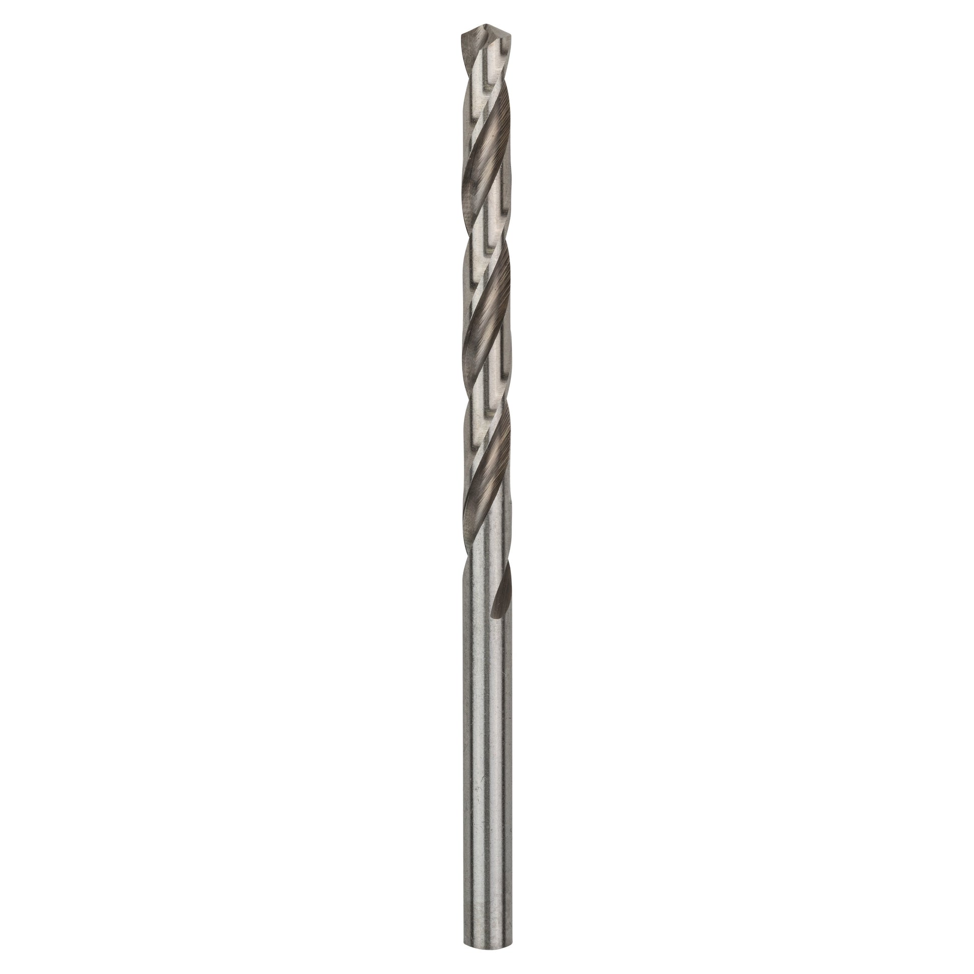 The HSS Twist Drill Bit Ground is for drilling through metal with maximum precision. The bit's exposed 135-degree self-centring split-point tip combines active cutting and perfect centring without wandering, delivering maximum precision. The split-point tip also eliminates any need to pre-punch or pilot drill for up to 10 mm. This precision-ground bit made of HSS (high-speed steel) enables up to 40% faster drilling rate and up to 50% lower feed pressure than standard-ground HSS drill bits with chisel edges. This bit is designed for drilling holes in alloyed and non-alloyed steel, cast steel, cast iron, sintered iron, malleable cast iron, non-ferrous metals and hard plastics. The HSS Twist Drill Bit Ground is manufactured to DIN 338. The drill bit is Type N (flute angle) with a 135-degree tip and a diameter tolerance of h8. It has a cylindrical shank system (shank equal to drill bit diameter) and is intended for use in drill stands and drill drivers.