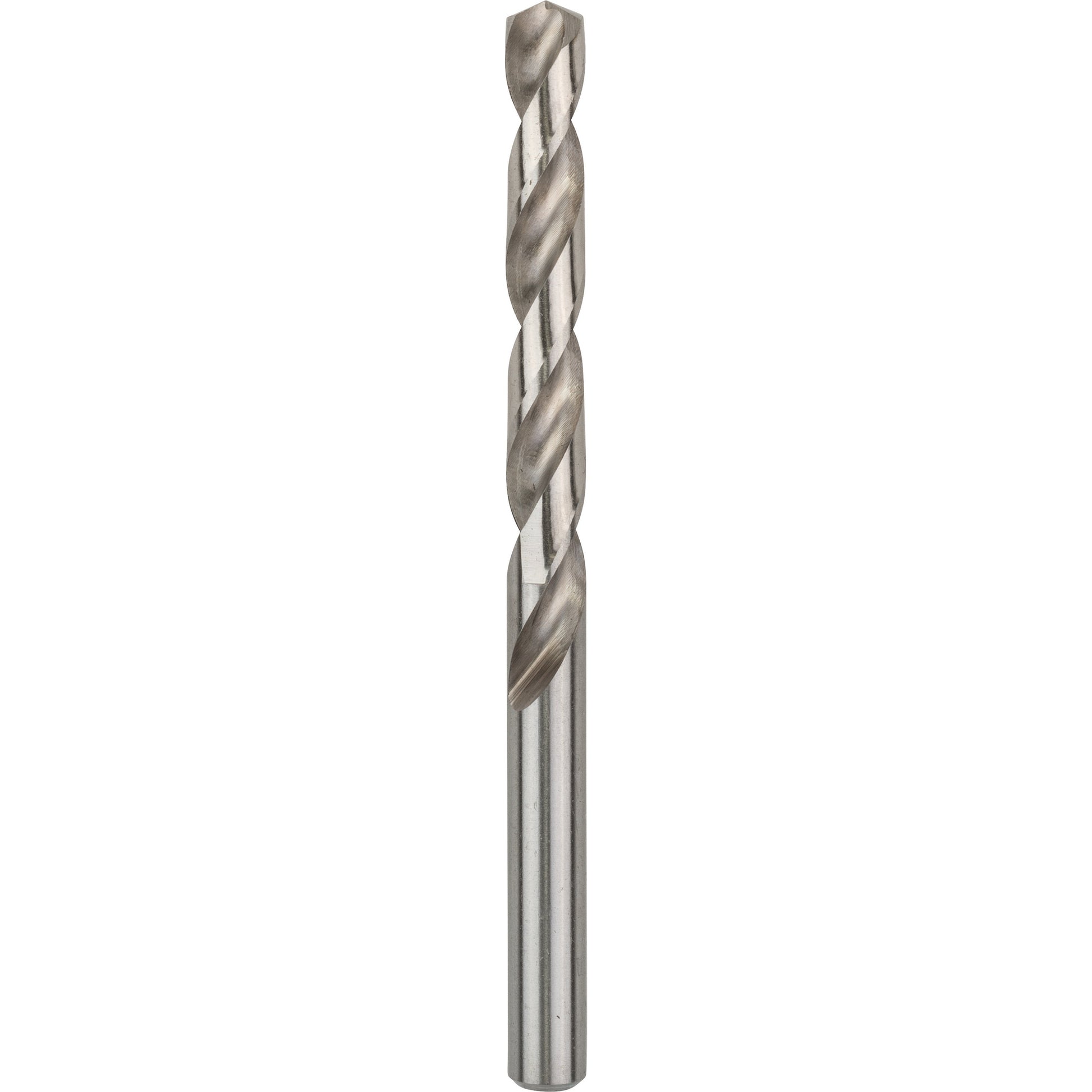 The HSS Twist Drill Bit Ground is for drilling through metal with maximum precision. The bit's exposed 135-degree self-centring split-point tip combines active cutting and perfect centring without wandering, delivering maximum precision. The split-point tip also eliminates any need to pre-punch or pilot drill for up to 10 mm. This precision-ground bit made of HSS (high-speed steel) enables up to 40% faster drilling rate and up to 50% lower feed pressure than standard-ground HSS drill bits with chisel edges. This bit is designed for drilling holes in alloyed and non-alloyed steel, cast steel, cast iron, sintered iron, malleable cast iron, non-ferrous metals and hard plastics. The HSS Twist Drill Bit Ground is manufactured to DIN 338. The drill bit is Type N (flute angle) with a 135-degree tip and a diameter tolerance of h8. It has a cylindrical shank system (shank equal to drill bit diameter) and is intended for use in drill stands and drill drivers.