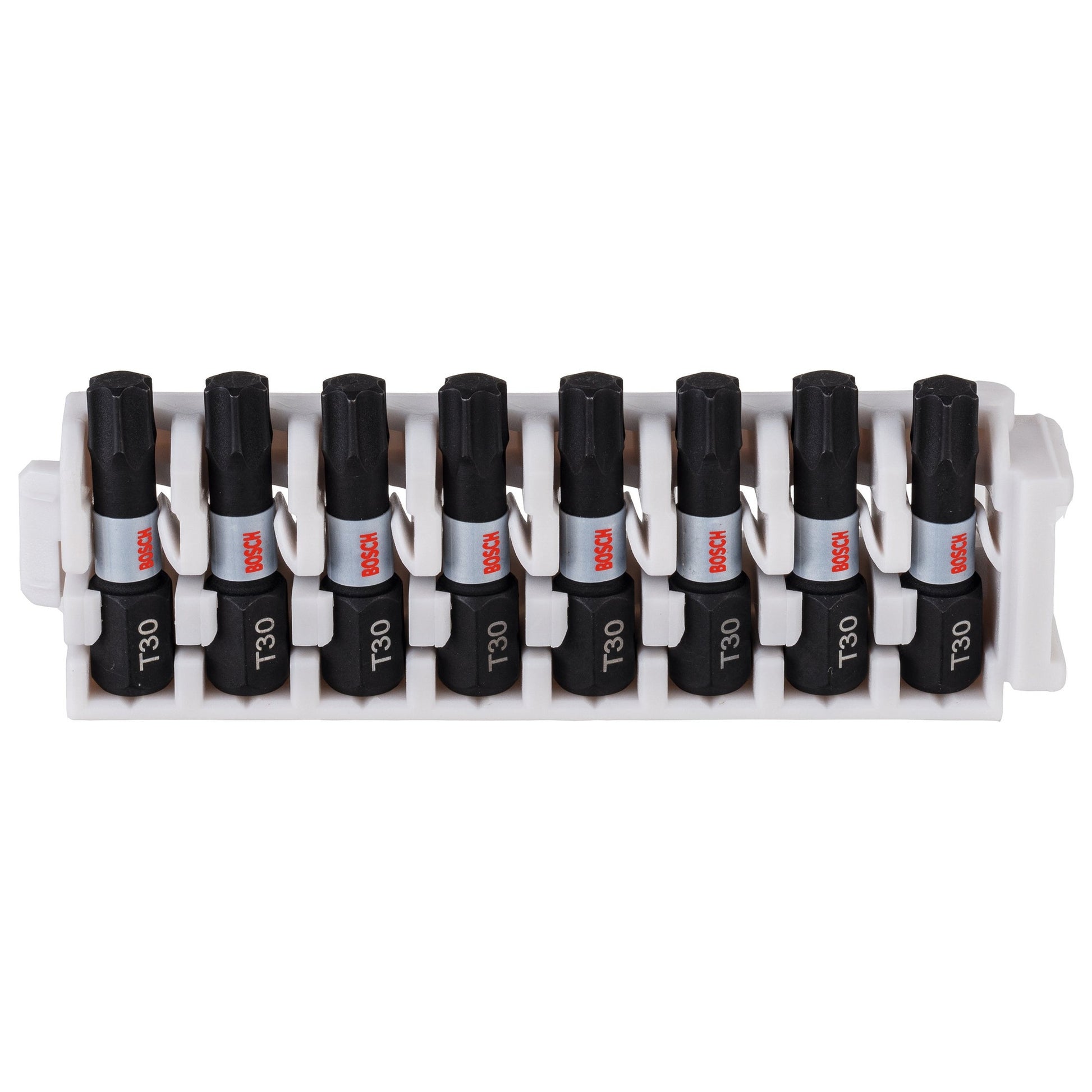 The Impact Control Screwdriver Bit is highly robust and ideal for heavy duty applications, even withstanding the high power of impact drivers. The bit features an extended torsion zone that makes it extremely sturdy for long-lasting work. S2 Modified Steel and an optimised heat-treatment process provide extra-tough endurance for high performance, including in plant installations or heavy industrial work. The Pick and Click Impact Control Screwdriver Bit Set, 36-Pieces also contains nutsetters as well as the Impact Control Universal Holder Standard Magnetic and the Impact Control Universal Holder Quick Release. These holders are ideal for extra-firm gripping of the bits in universal screwdriving applications with power tools, while the Quick Release Function enables fast and easy bit changes and further supports the strong bit hold. The screwdriver bit is part of the Bosch Pick and Click system, which enables individually buildable accessory sets for fully customisable bit collections. Click-fitting slots perfectly secure individually purchased packs for a personalised collection and the easy replacement of old packs. The bit comes in a plastic holder that can be easily clicked into the Pick and Click Empty Cases M and L for personalised bit set variations. It has a 1/4-inch external hex shank for use with drill drivers, screwdrivers, and especially with impact drivers.