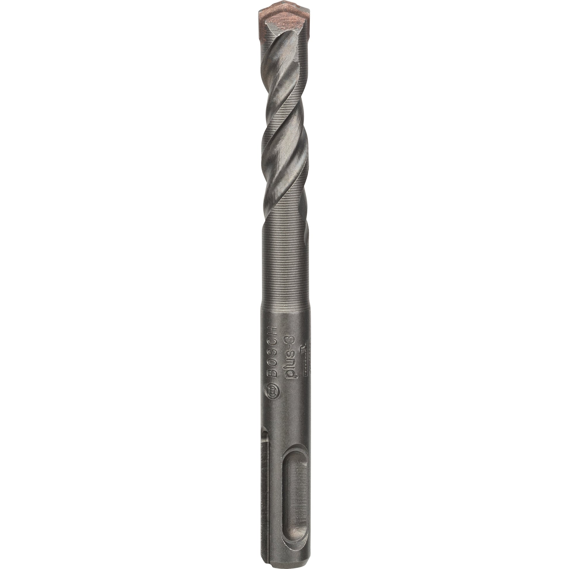The SDS plus-3 Drill Bit offers durability when drilling in concrete. To prevent heat development, the 4-flute dura design provides effective dust removal for increased endurance. It is made of high-alloy steel, which is produced with an optimised hardening technology to withstand wear. For additional resistance, indented cutting edges are made from an ideal Bosch-controlled carbide blend. As proof of quality, the drill bit bears the test mark of the PGM Masonry Drill Bit Association Board, guaranteeing compliance with tight tolerances, exact drilling and the firm hold of fixings. The bit is intended for work on concrete and masonry and is to be used with rotary hammers with SDS plus holders.