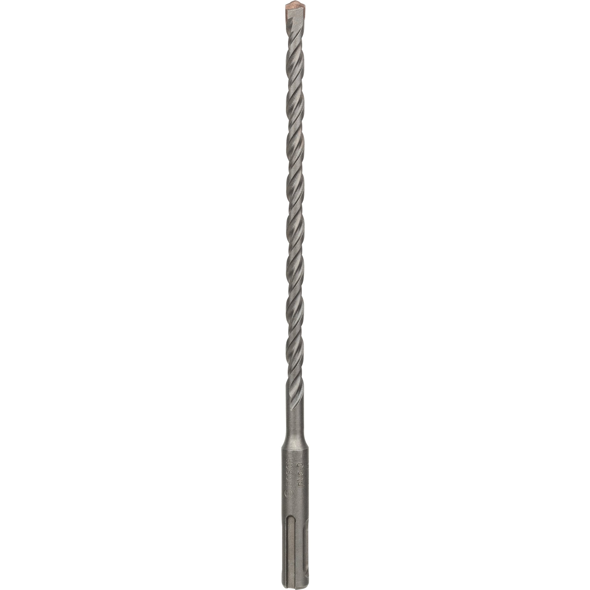 The SDS plus-3 Drill Bit offers durability when drilling in concrete. To prevent heat development, the 4-flute dura design provides effective dust removal for increased endurance. It is made of high-alloy steel, which is produced with an optimised hardening technology to withstand wear. For additional resistance, indented cutting edges are made from an ideal Bosch-controlled carbide blend. As proof of quality, the drill bit bears the test mark of the PGM Masonry Drill Bit Association Board, guaranteeing compliance with tight tolerances, exact drilling and the firm hold of fixings. The bit is intended for work on concrete and masonry and is to be used with rotary hammers with SDS plus holders.