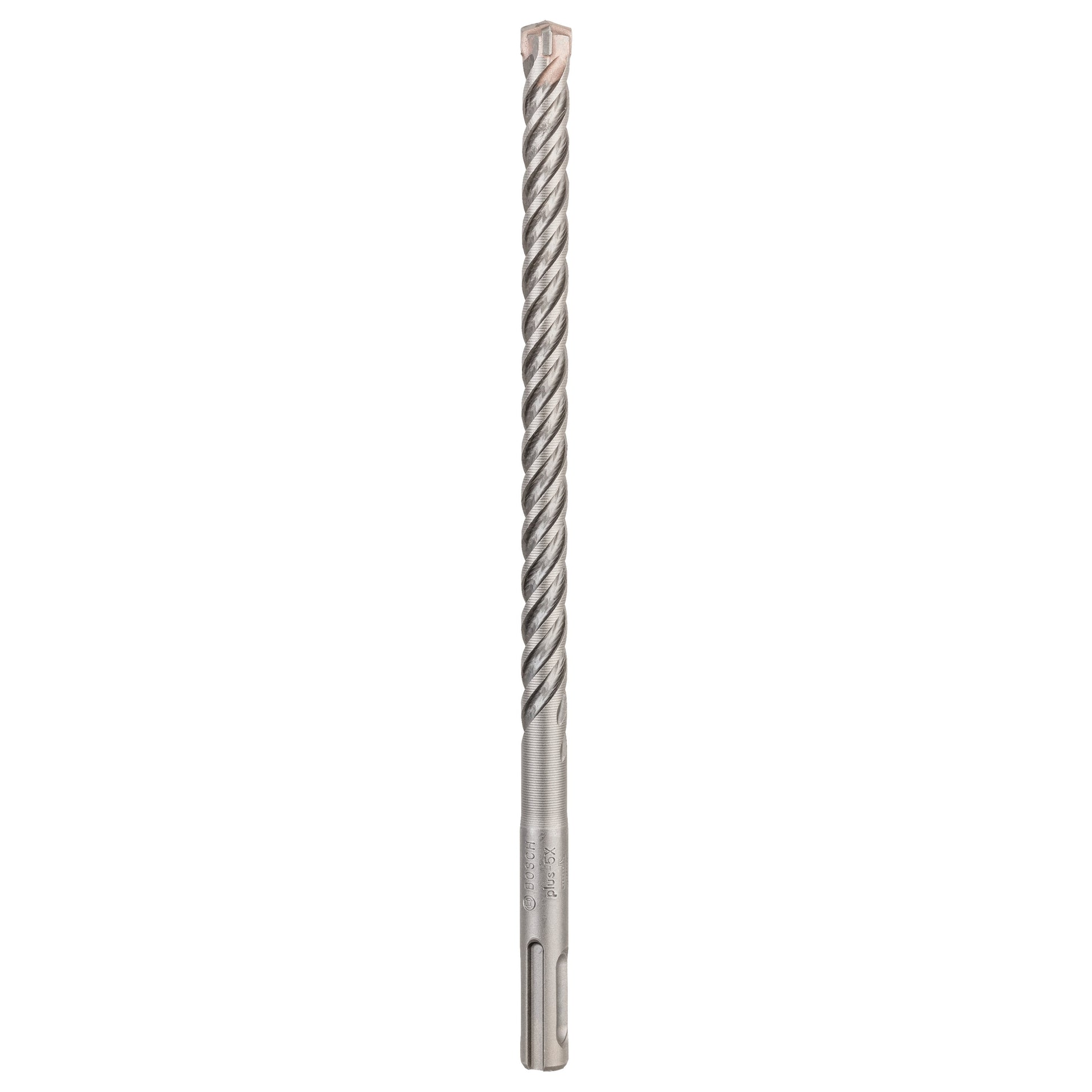 The SDS plus-5X Drill Bit offers highly efficient drilling in reinforced concrete. The geometrical form of the 4-cutter head prevents jamming and breakage for optimal results. The turn-angle head and the large and short dust removal channels within the 4-flute design provide fast dust removal so the bit can slice through concrete and rebar quickly with reduced wear. For efficient work and exact hole diameters, the centring tip guides drilling from the start, to prevent wandering, which can falsify the hole diameter. The bit is intended for use on masonry, concrete and reinforced concrete. As proof of quality, the drill bit bears the test mark of the PGM Masonry Drill Bit Association Board, guaranteeing compliance with tight tolerances, exact drilling and the firm hold of fixings. It is compatible with rotary hammers with SDS plus holders.