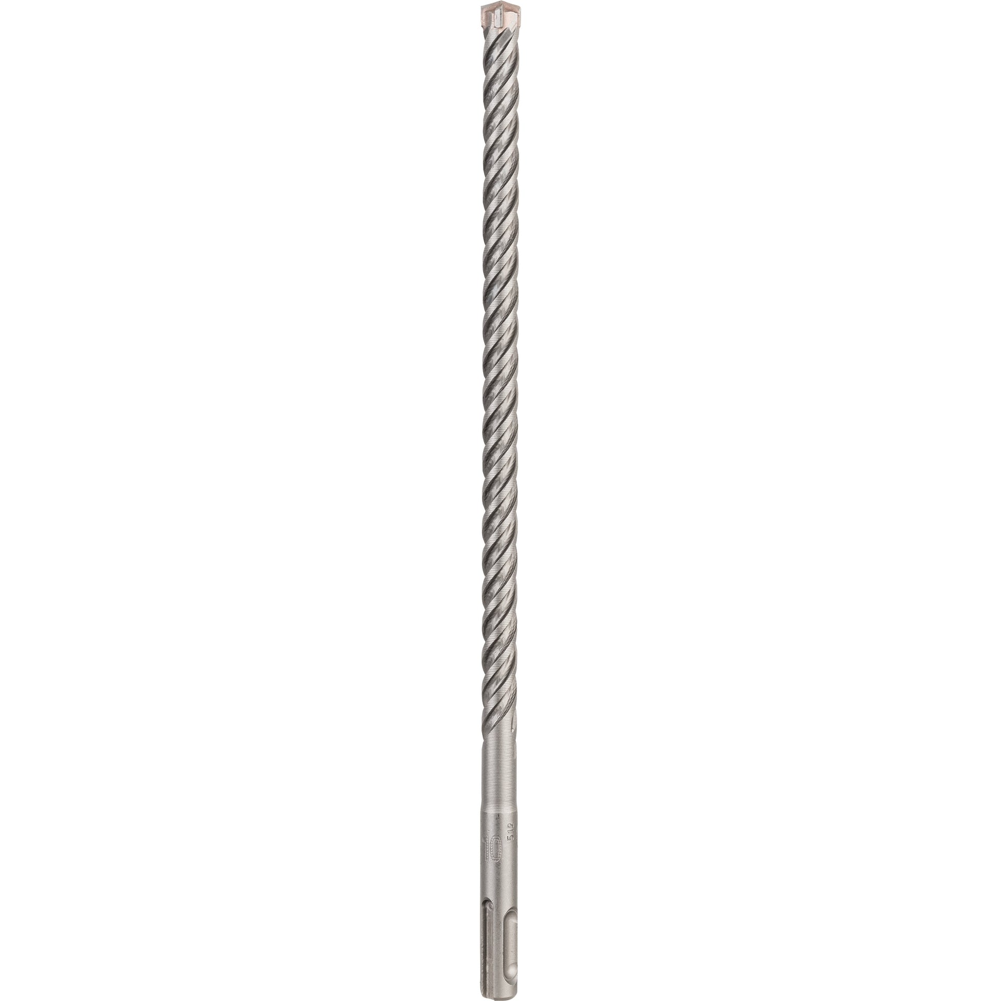 The SDS plus-5X Drill Bit offers highly efficient drilling in reinforced concrete. The geometrical form of the 4-cutter head prevents jamming and breakage for optimal results. The turn-angle head and the large and short dust removal channels within the 4-flute design provide fast dust removal so the bit can slice through concrete and rebar quickly with reduced wear. For efficient work and exact hole diameters, the centring tip guides drilling from the start, to prevent wandering, which can falsify the hole diameter. The bit is intended for use on masonry, concrete and reinforced concrete. As proof of quality, the drill bit bears the test mark of the PGM Masonry Drill Bit Association Board, guaranteeing compliance with tight tolerances, exact drilling and the firm hold of fixings. It is compatible with rotary hammers with SDS plus holders.