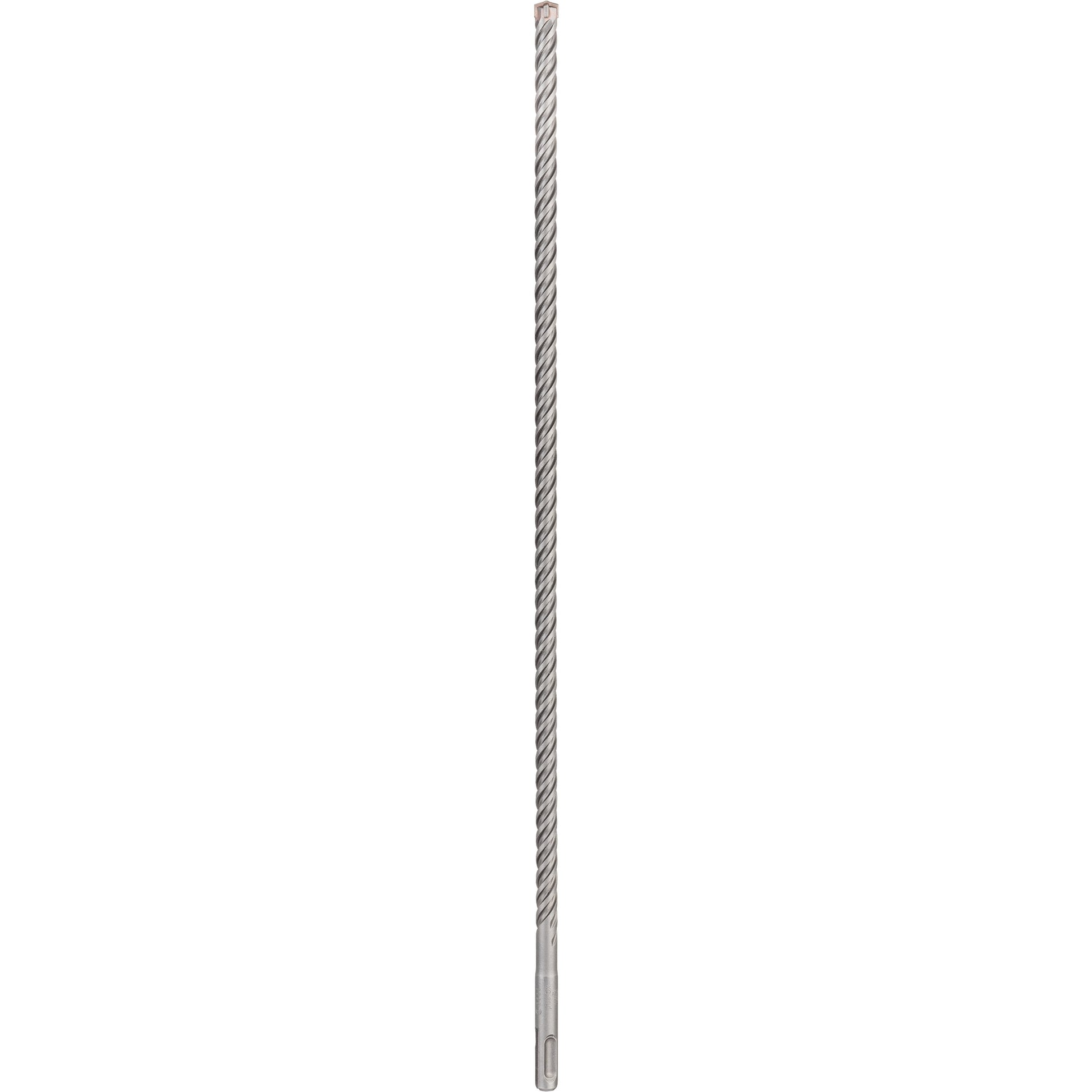 The SDS plus-5X Drill Bit offers highly efficient drilling in reinforced concrete. The geometrical form of the 4-cutter head prevents jamming and breakage for optimal results. The turn-angle head and the large and short dust removal channels within the 4-flute design provide fast dust removal so the bit can slice through concrete and rebar quickly with reduced wear. For efficient work and exact hole diameters, the centring tip guides drilling from the start, to prevent wandering, which can falsify the hole diameter. The bit is intended for use on masonry, concrete and reinforced concrete. As proof of quality, the drill bit bears the test mark of the PGM Masonry Drill Bit Association Board, guaranteeing compliance with tight tolerances, exact drilling and the firm hold of fixings. It is compatible with rotary hammers with SDS plus holders.