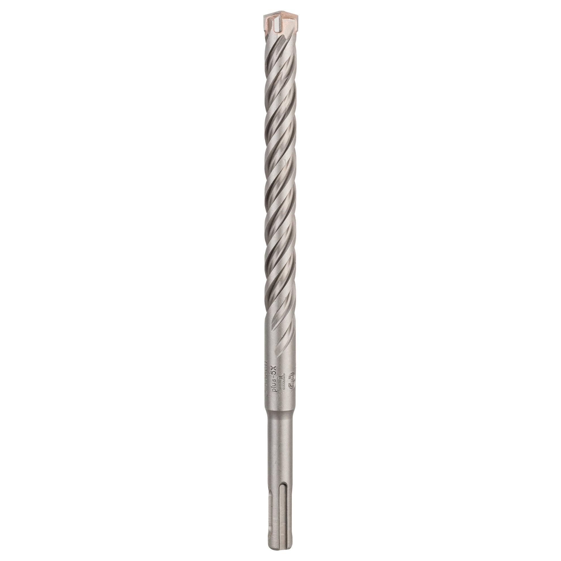 The SDS plus-5X Drill Bit offers highly efficient drilling in reinforced concrete. The geometrical form of the 4-cutter head prevents jamming and breakage for optimal results. The turn-angle head and the large and short dust removal channels within the 4-flute design provide fast dust removal so the bit can slice through concrete and rebar quickly with reduced wear. For efficient work and exact hole diameters, the centring tip guides drilling from the start, to prevent wandering, which can falsify the hole diameter. The bit is intended for use on masonry, concrete and reinforced concrete. As proof of quality, the drill bit bears the test mark of the PGM Masonry Drill Bit Association Board, guaranteeing compliance with tight tolerances, exact drilling and the firm hold of fixings. It is compatible with rotary hammers with SDS plus holders.