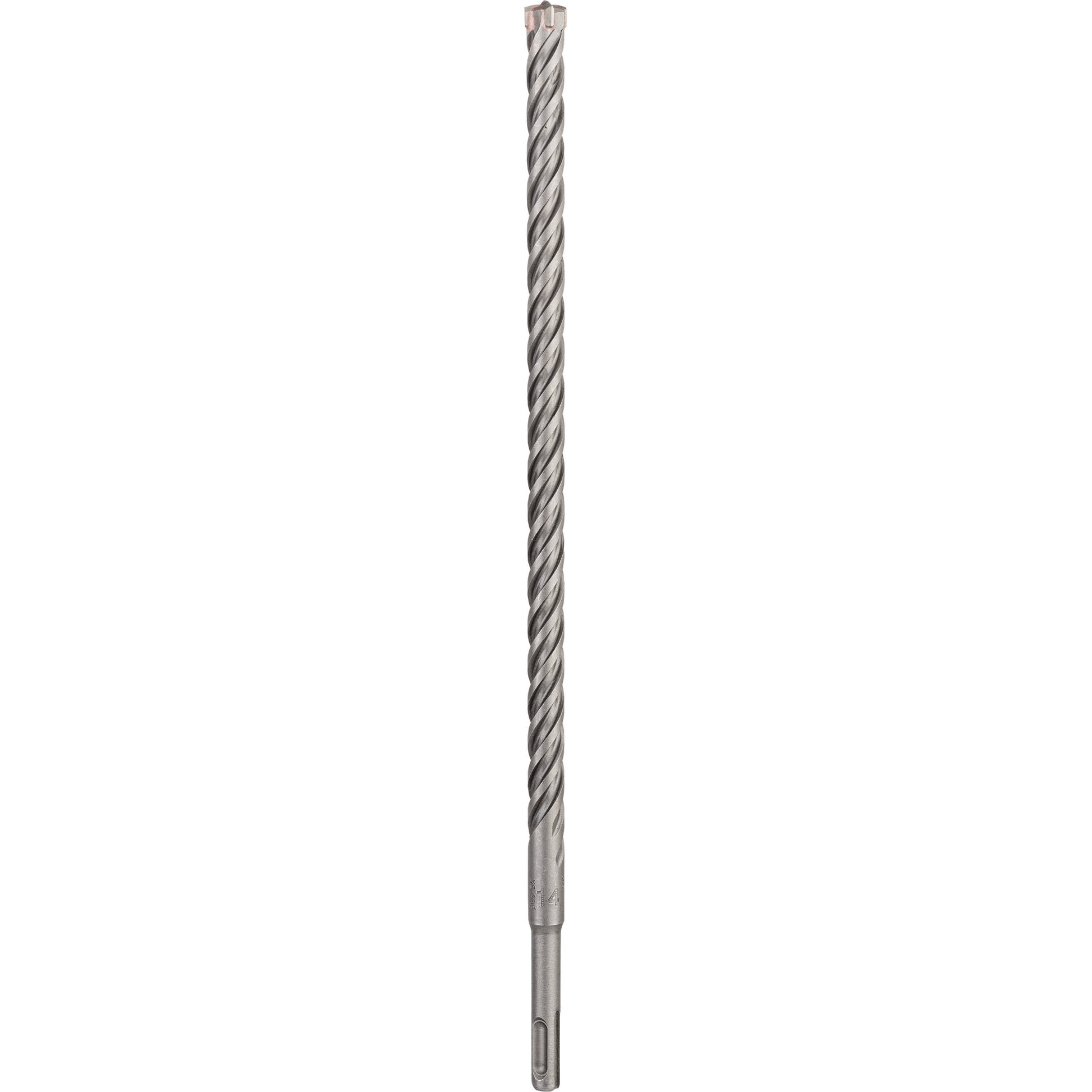 The SDS plus-5X Drill Bit offers highly efficient drilling in reinforced concrete. The geometrical form of the 4-cutter head prevents jamming and breakage for optimal results. The turn-angle head and the large and short dust removal channels within the 4-flute design provide fast dust removal so the bit can slice through concrete and rebar quickly with reduced wear. For efficient work and exact hole diameters, the centring tip guides drilling from the start, to prevent wandering, which can falsify the hole diameter. The bit is intended for use on masonry, concrete and reinforced concrete. As proof of quality, the drill bit bears the test mark of the PGM Masonry Drill Bit Association Board, guaranteeing compliance with tight tolerances, exact drilling and the firm hold of fixings. It is compatible with rotary hammers with SDS plus holders.