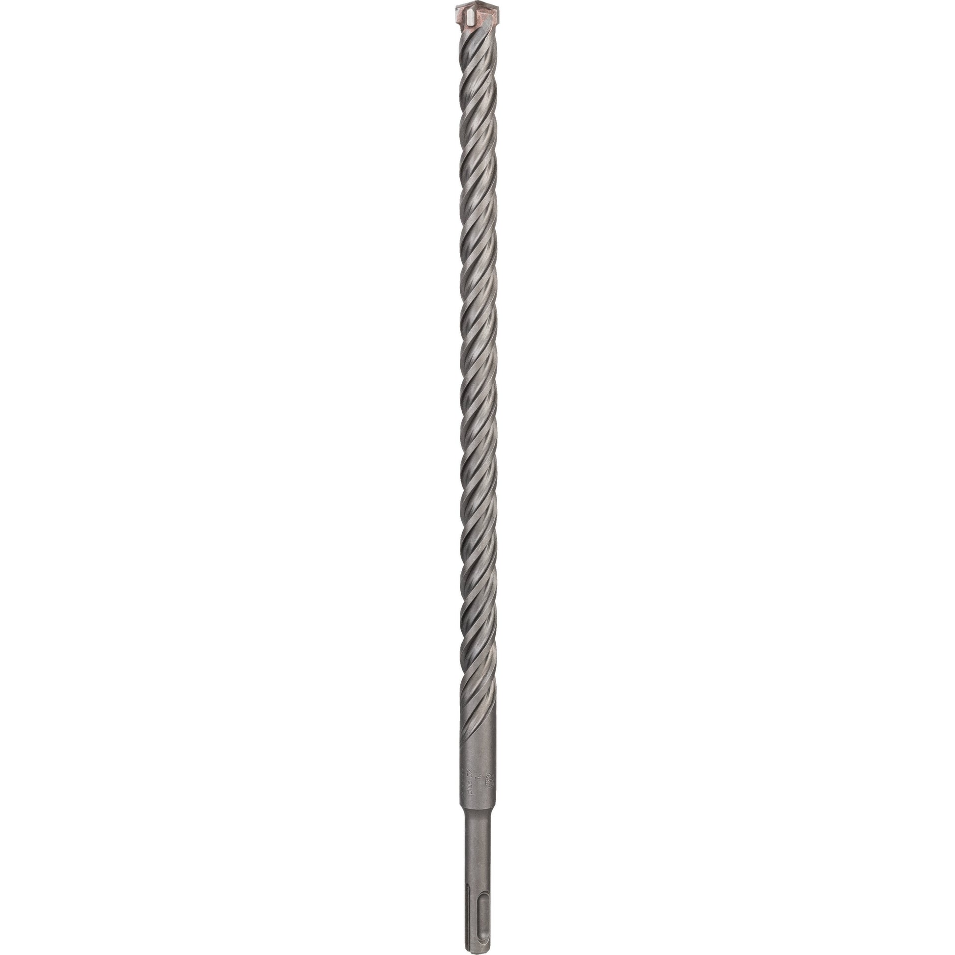 The SDS plus-5X Drill Bit offers highly efficient drilling in reinforced concrete. The geometrical form of the 4-cutter head prevents jamming and breakage for optimal results. The turn-angle head and the large and short dust removal channels within the 4-flute design provide fast dust removal so the bit can slice through concrete and rebar quickly with reduced wear. For efficient work and exact hole diameters, the centring tip guides drilling from the start, to prevent wandering, which can falsify the hole diameter. The bit is intended for use on masonry, concrete and reinforced concrete. As proof of quality, the drill bit bears the test mark of the PGM Masonry Drill Bit Association Board, guaranteeing compliance with tight tolerances, exact drilling and the firm hold of fixings. It is compatible with rotary hammers with SDS plus holders.
