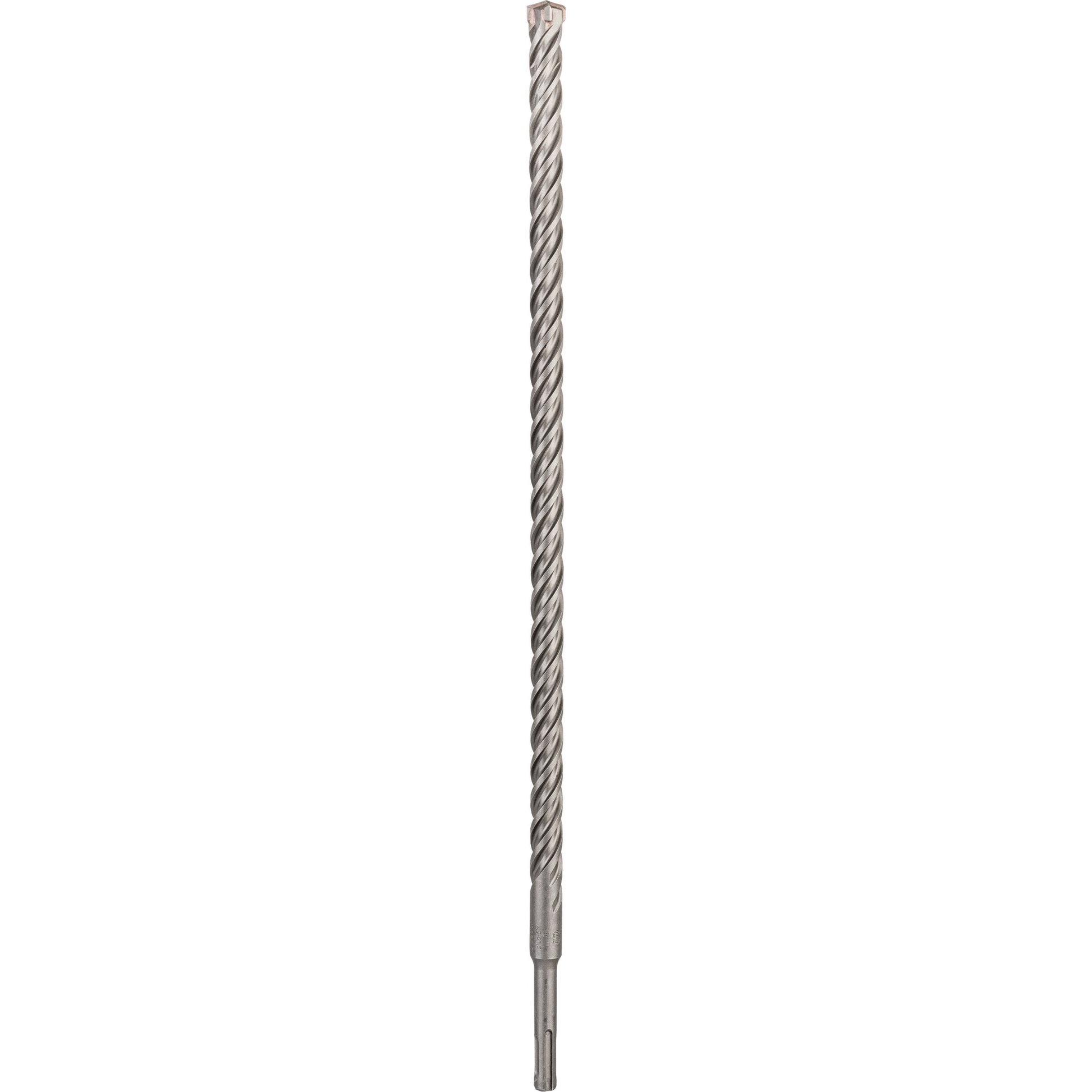 The SDS plus-5X Drill Bit offers highly efficient drilling in reinforced concrete. The geometrical form of the 4-cutter head prevents jamming and breakage for optimal results. The turn-angle head and the large and short dust removal channels within the 4-flute design provide fast dust removal so the bit can slice through concrete and rebar quickly with reduced wear. For efficient work and exact hole diameters, the centring tip guides drilling from the start, to prevent wandering, which can falsify the hole diameter. The bit is intended for use on masonry, concrete and reinforced concrete. As proof of quality, the drill bit bears the test mark of the PGM Masonry Drill Bit Association Board, guaranteeing compliance with tight tolerances, exact drilling and the firm hold of fixings. It is compatible with rotary hammers with SDS plus holders.