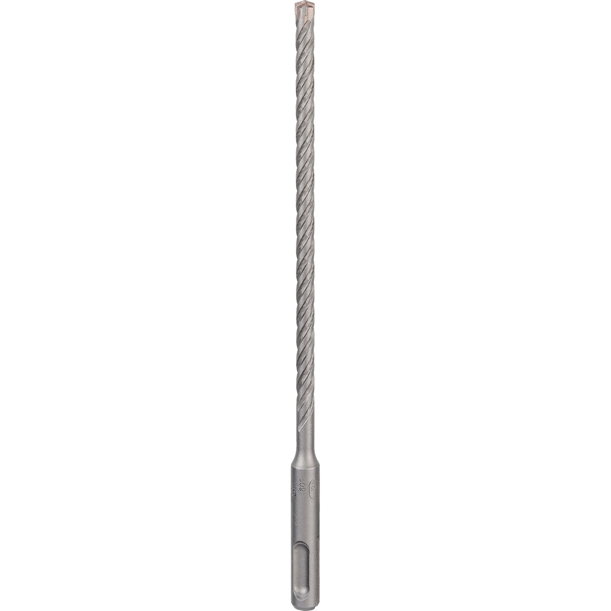 The SDS plus-5X Drill Bit offers highly efficient drilling in reinforced concrete. The geometrical form of the 4-cutter head prevents jamming and breakage for optimal results. The turn-angle head and the large and short dust removal channels within the 4-flute design provide fast dust removal so the bit can slice through concrete and rebar quickly with reduced wear. For efficient work and exact hole diameters, the centring tip guides drilling from the start, to prevent wandering, which can falsify the hole diameter. The bit is intended for use on masonry, concrete and reinforced concrete. As proof of quality, the drill bit bears the test mark of the PGM Masonry Drill Bit Association Board, guaranteeing compliance with tight tolerances, exact drilling and the firm hold of fixings. It is compatible with rotary hammers with SDS plus holders.