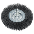 The Wire Wheel provides a good fine surface finish. Fitted with crimped wire for light- to medium-duty cleaning applications on small surfaces, it is ideal for removing annealing colour on welded seams. The wire wheel is suitable for cleaning work at high circumferential speeds on smaller steel surfaces, edges or in grooves. Moreover, it is suitable for removing rust, roughing, mat sanding and paint stripping. Brush wires are available in different thicknesses for variable levels of abrasive needs. Thicker wires are more aggressive, producing a coarser yet faster surface finish, while thinner wires deliver finer, smoother surface results. It is intended for use with drills with 6-mm shank.
