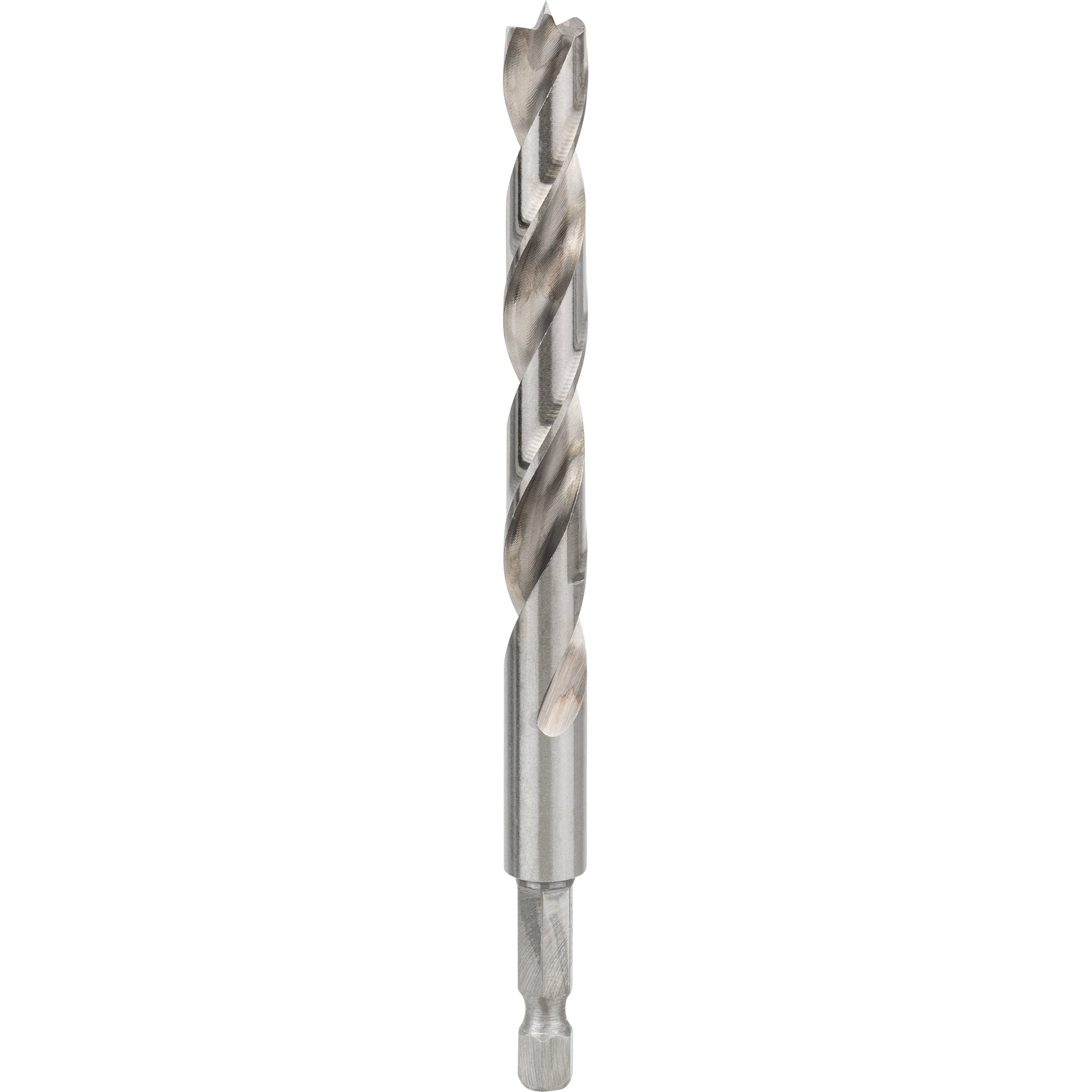 The HSS Brad Point Drill Bit offers precise drilling in soft and hard wood and can be used for through holes and pocket holes. This extremely sharp drill bit with a centring tip allows for exact positioning of the hole. Tear-free holes are produced by high-quality shoulder cutters with precise edges. For exact results, its two flutes prevent materials from clogging the hole and easily remove debris. This drill bit is suitable for use on soft and hard wood as well as for laminated boards and MDF. Made of HSS (high-speed steel), this Brad Point Drill Bit is ground from solid metal. Its hexagonal shank system allows for fast and tool-free drill bit changes. It has a hexagonal shank system and is suitable for use in drill drivers and drill stands.