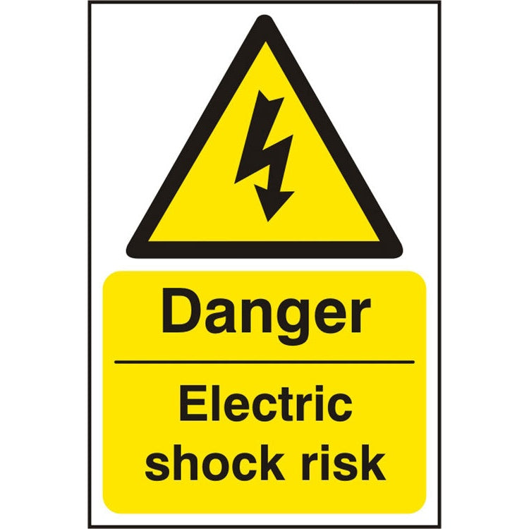 • Danger Electric shock risk safety sign• Self adhesive vinyl backing