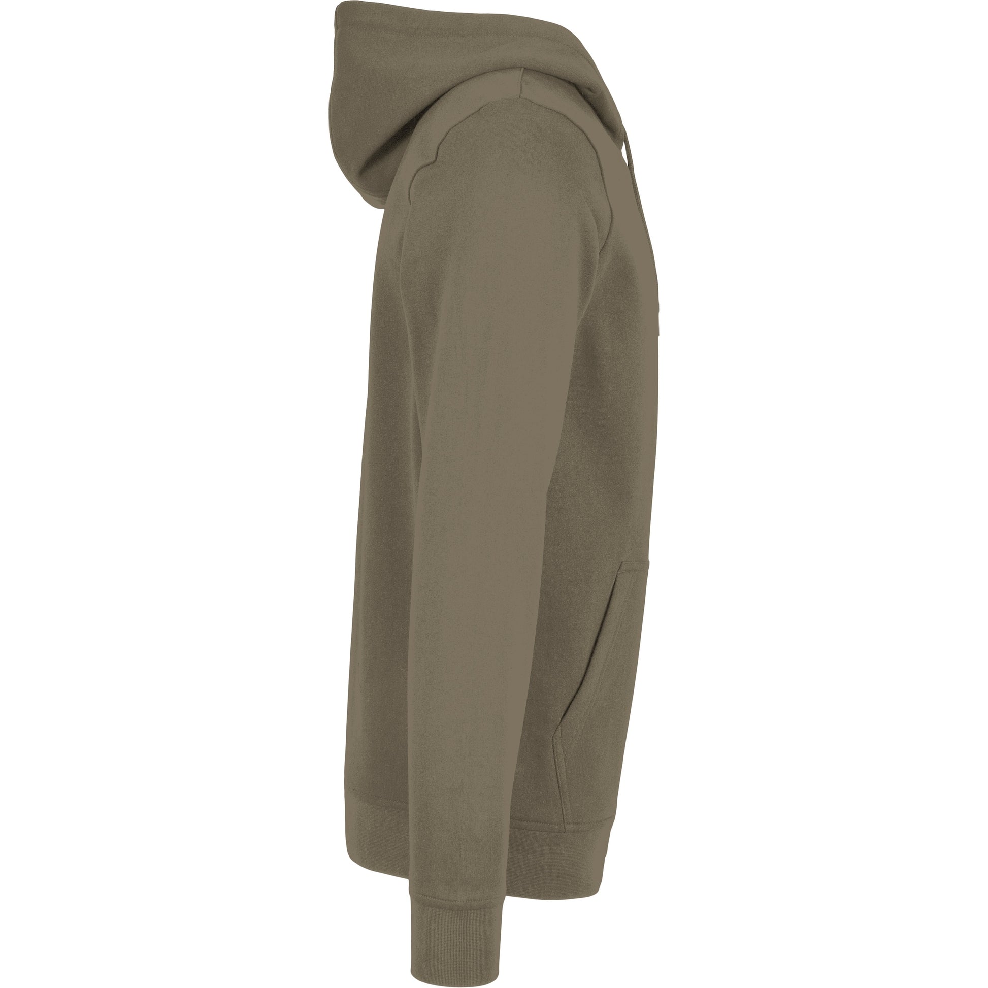Inside brushed sweat fabric with neutral size label without branding, making neck print possible. Kangaroo pocket with pocket openings out of shell. Set-in sleeves, rib cuffs at the hem and sleeve opening. Neck half moon. Hood with two seams – herringbone neck tape. Hood lining out of shell.
