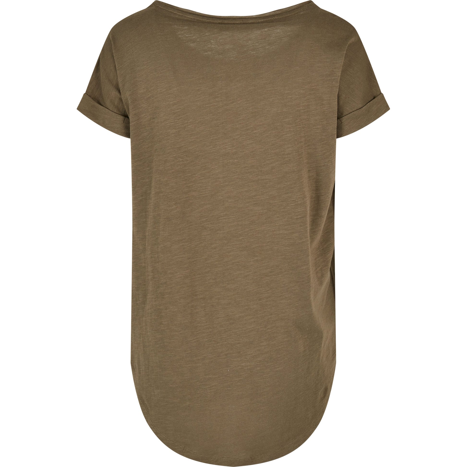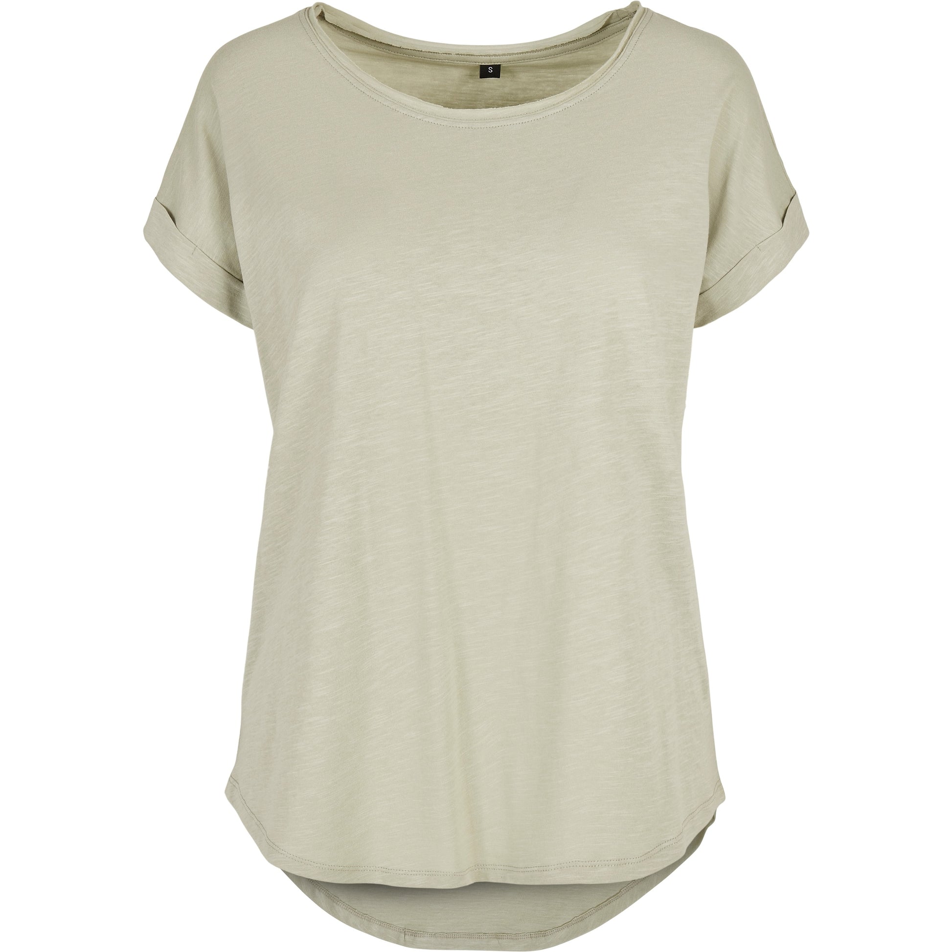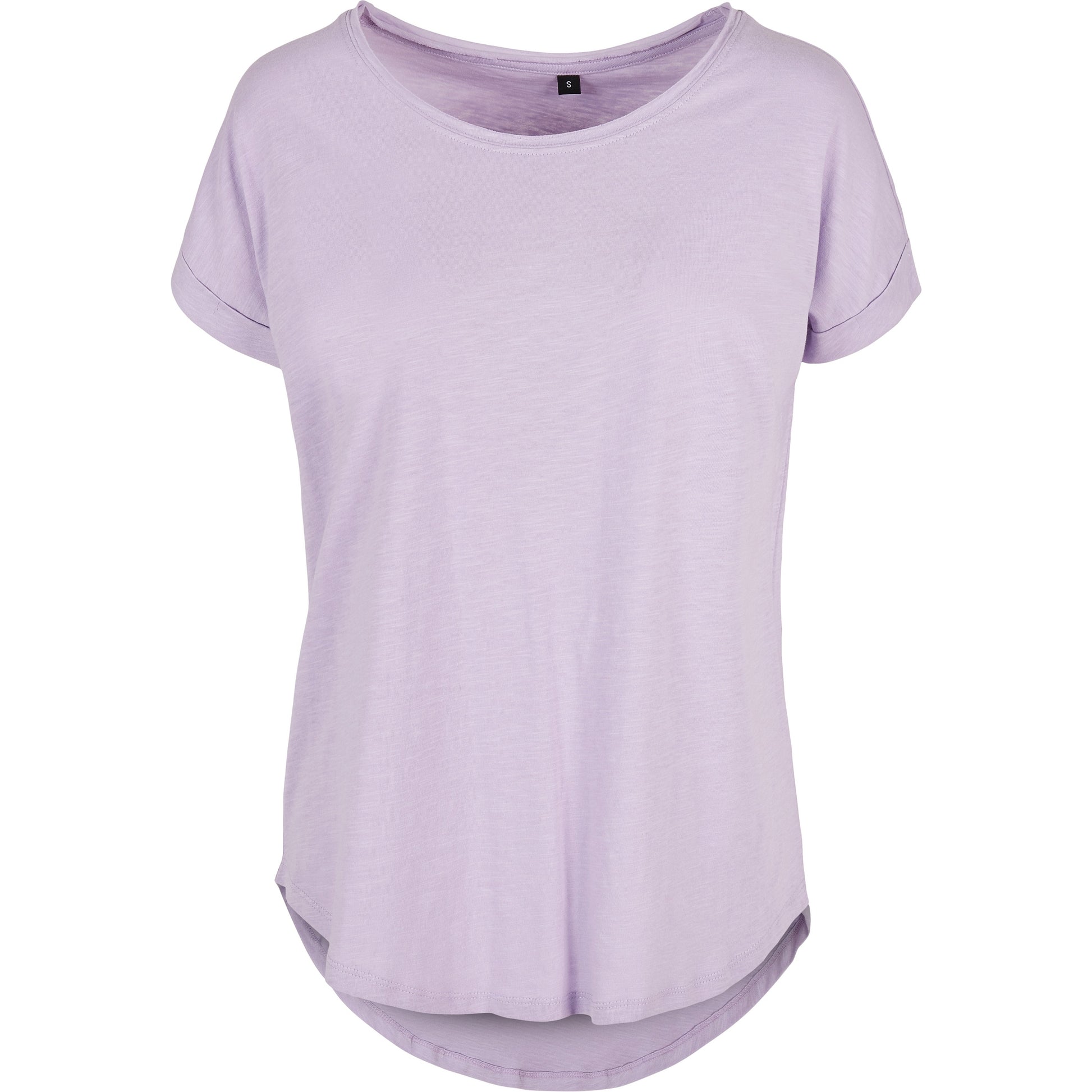 With its oversized sleeves, rounded hem and slightly elongated back, the Women's long slub tee has the classic long tee style. The wide neckline and light single jersey fabric give it a very feminine look. Ideally suited for embellishing with printing.