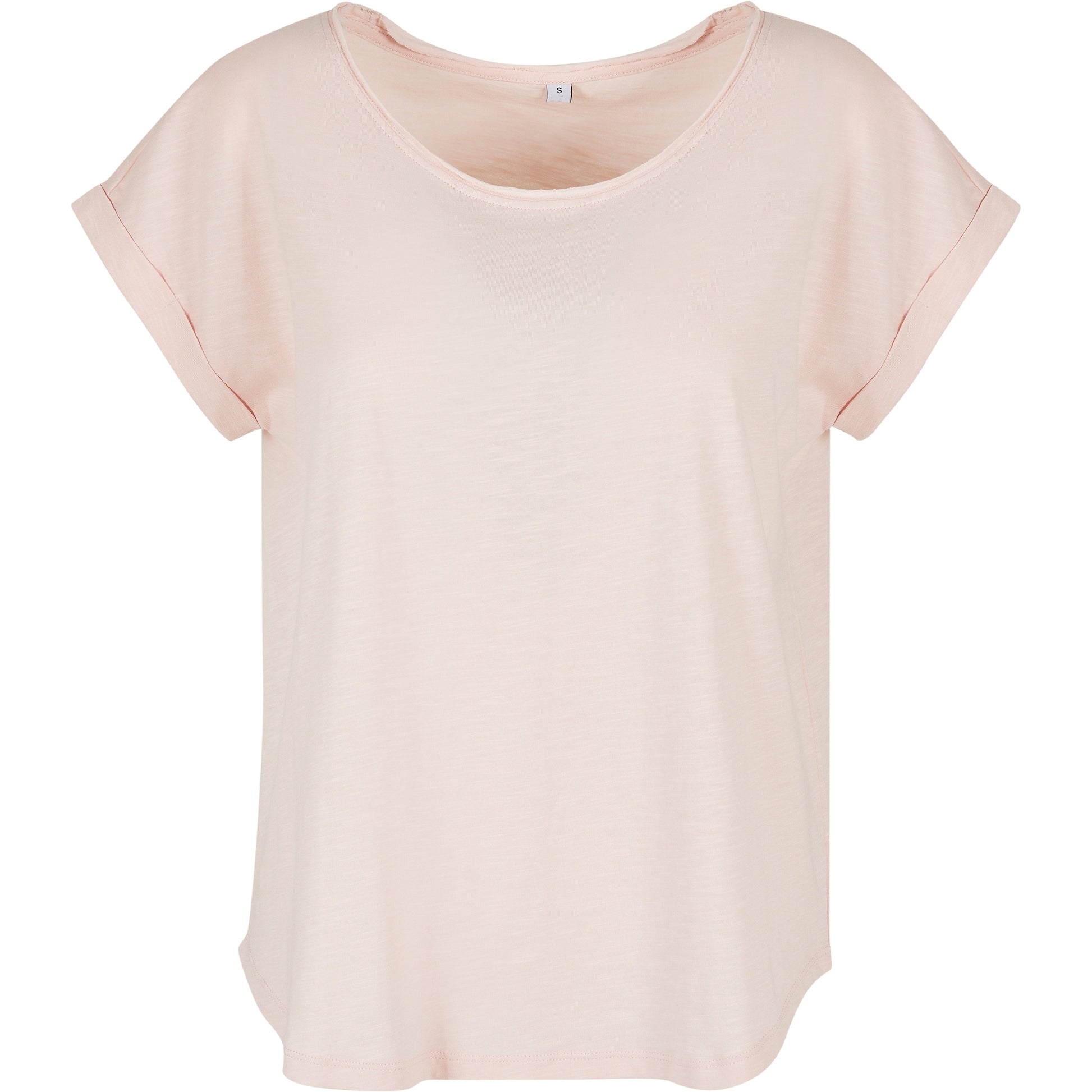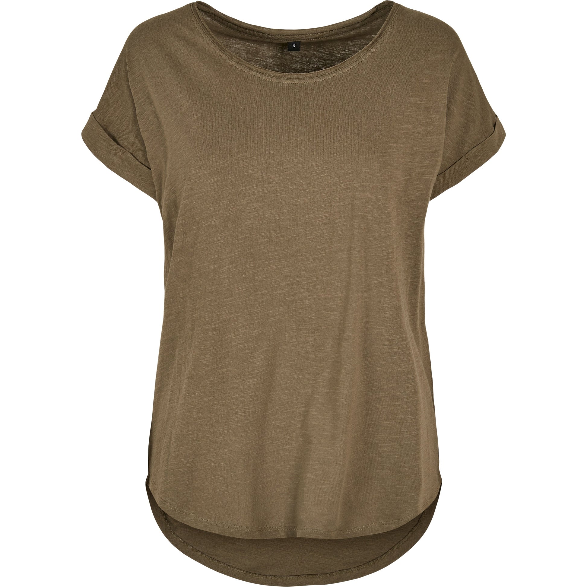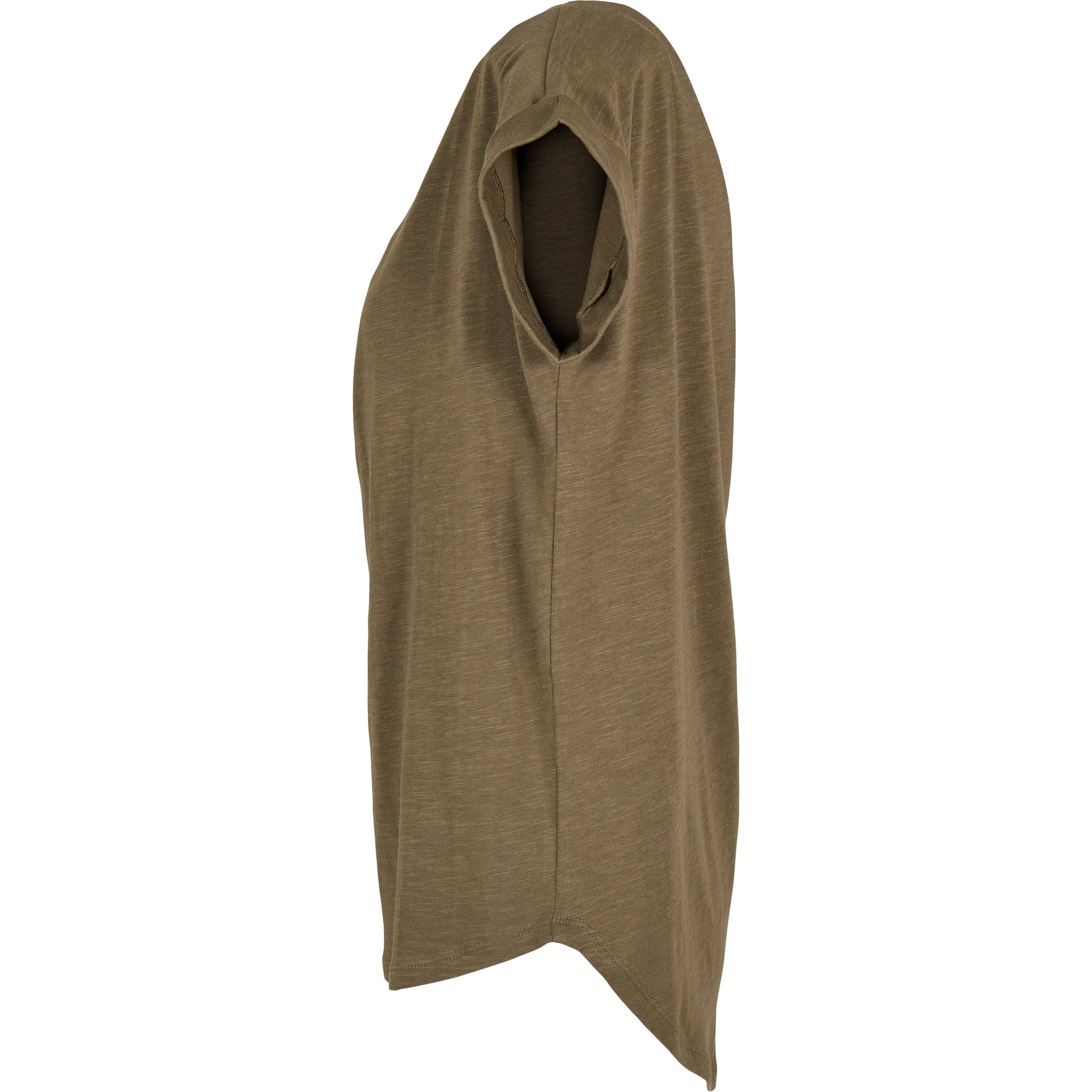 With its oversized sleeves, rounded hem and slightly elongated back, the Women's long slub tee has the classic long tee style. The wide neckline and light single jersey fabric give it a very feminine look. Ideally suited for embellishing with printing.