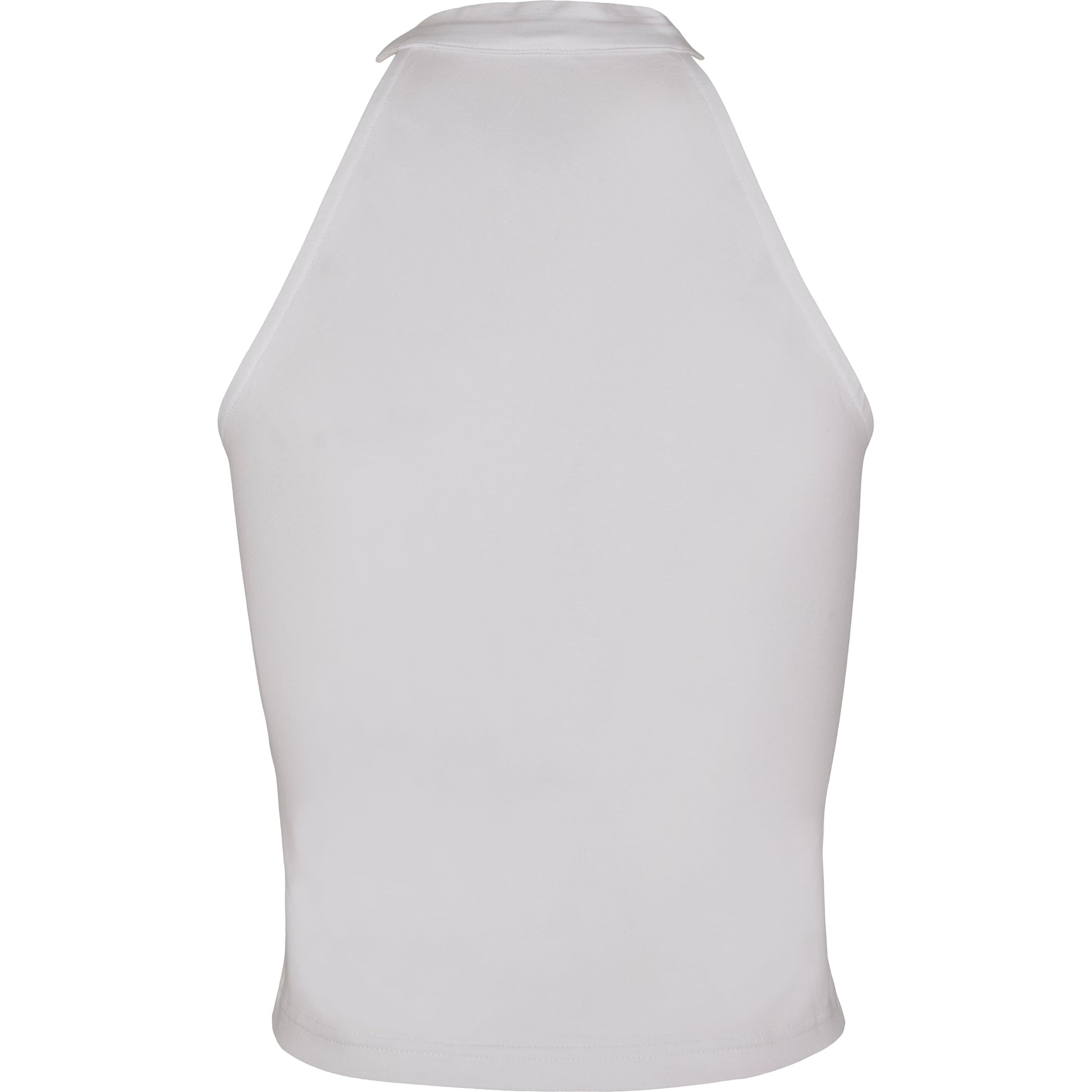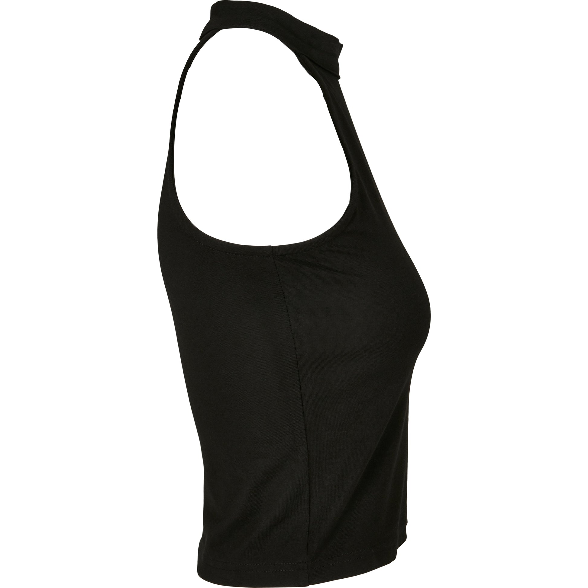 An exciting, sporty top that offers modern fit and high wearing comfort, thanks to the employed cotton-stretch material. Front and back are joined together by a light and sexy turtle neck, while the shoulders remain free, thus creating a wonderful look. Furthermore, the stylish short top is ready for further enhancement via flex or silk printing or by embroidery, if wished for.