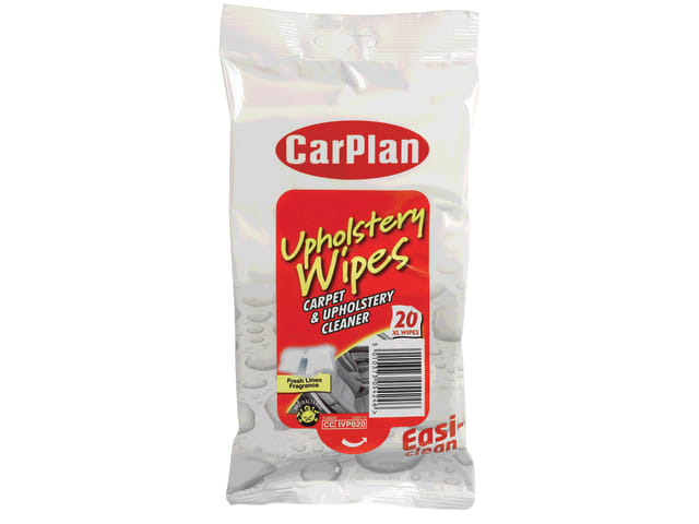 CarPlan Upholstery Wipes have been specially developed to clean everyday stains, dirt and grime from car upholstery and carpets. The odour eliminating formulation also removes lingering odours that can become trapped in fibres. Suitable for car upholstery and carpets. They have a fresh linen fragrance.