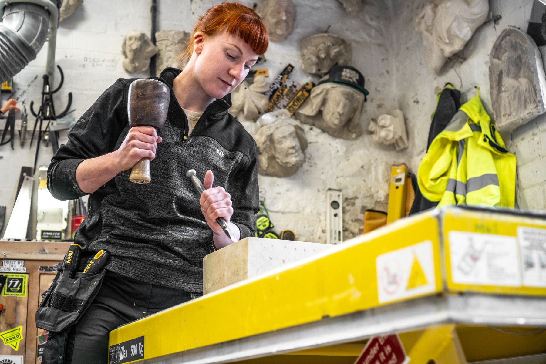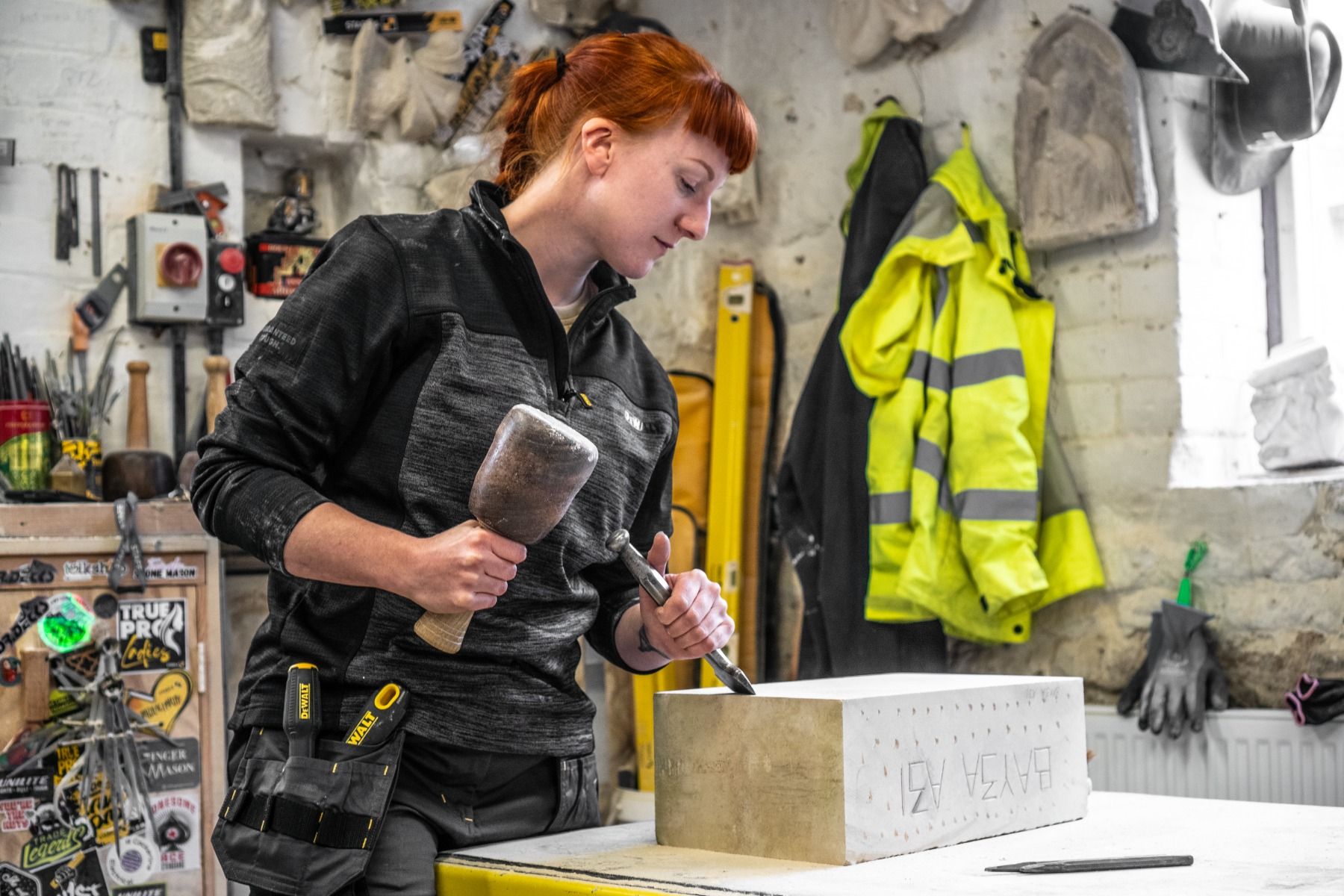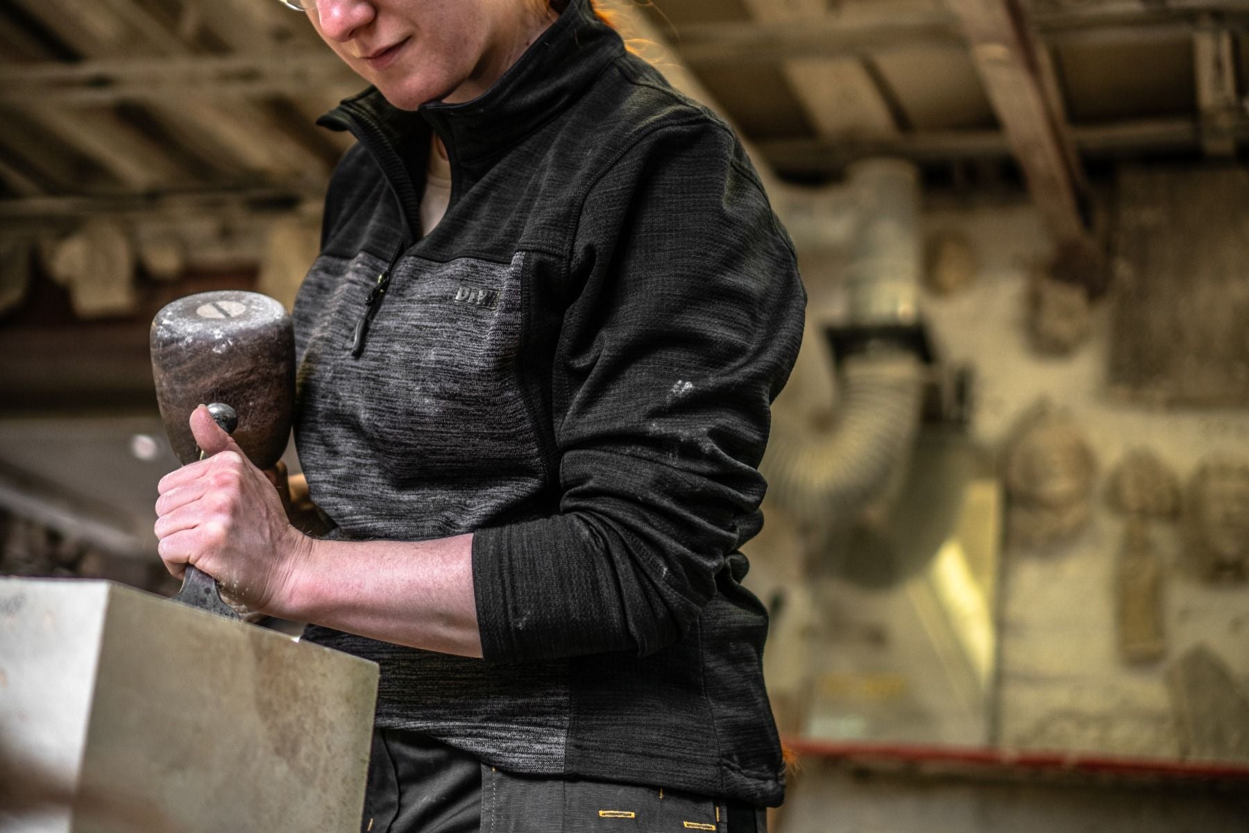 Charlotte zip fleece is a mid layer 1/4 zip top in all over stretch fabric. Grid fleece backing for added comfort. Funnel neck collar. Two tone black grey colour with DeWalt branding. Flatlock seam construction.
