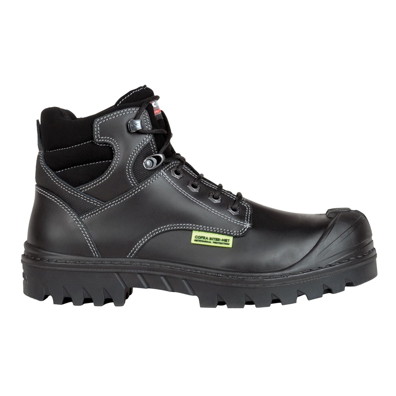 The Cofra Darwen metatarsal safety boot offers significant protection for all conditions. With a water repellent full grain leather upper and internal metatarsal protection, this boot provides exceptional protection. What's more, the Darwen offers abrasion resistance with an internal internal lining that is both breathable and has antibacterial agents that absorbs and releases moisture. The excellent heat defender PU/nitrile rubber Sole is resistant to over +300C Heat for 1 minute of contact making these boots, perfectly engineered to protect you in extreme conditions all day.