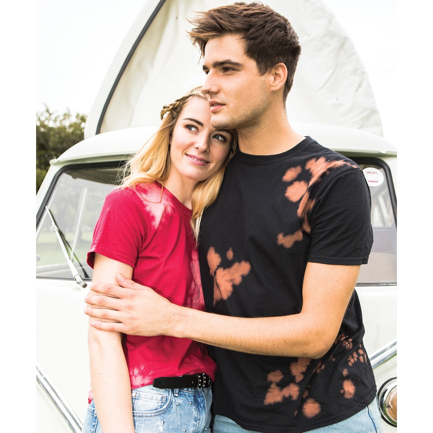 Make a statement with this retro inspired bleach out T. Using 4.5 oz. ringspun cotton for soft handle and 3 bold colours this make a unique embellishment base.