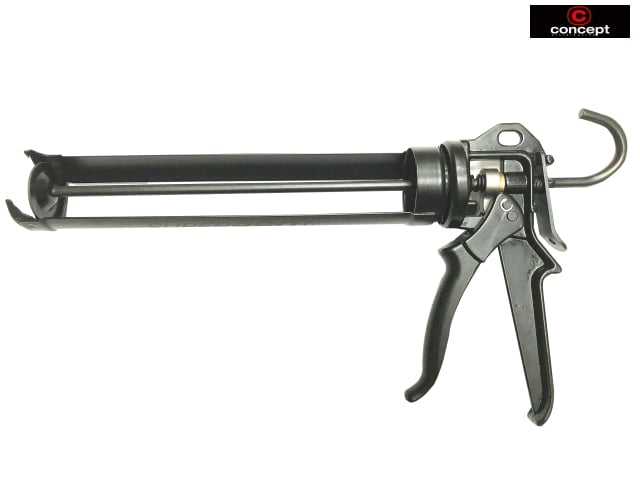 The Concept 210079 Superpro Caulking Gun has a reinforced open barrel end thus making suitable for all types of tubes and allowing quick change of tubes. It has a high thrust ratio of 25:1. With a rotatable barrel and a hardened steel push bar that has an anti-rust coating. The hooked push bar makes for easy hanging and with a wide opening for easy tube change it is designed to suit all tube nozzle types.
